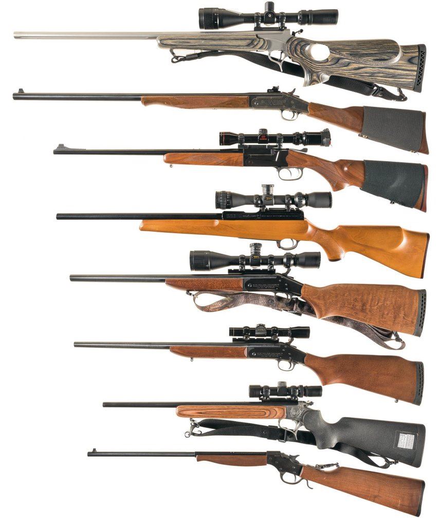 Eight Sporting Rifles -A) Thompson Center Arms Encore Model Single Shot Rifle with Extra Barrels and Scopes