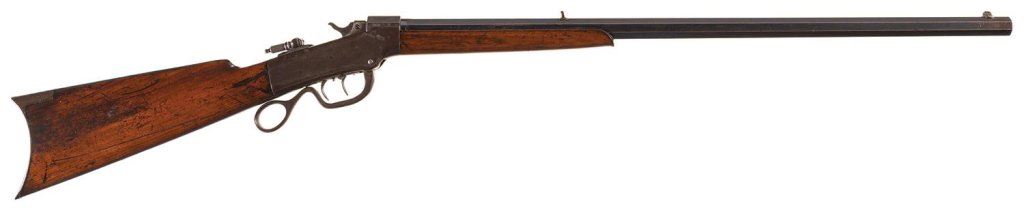 Manufactured from the mid-1870s to the early 1890s. Equipped with a tang mounted peep sight and double set triggers.