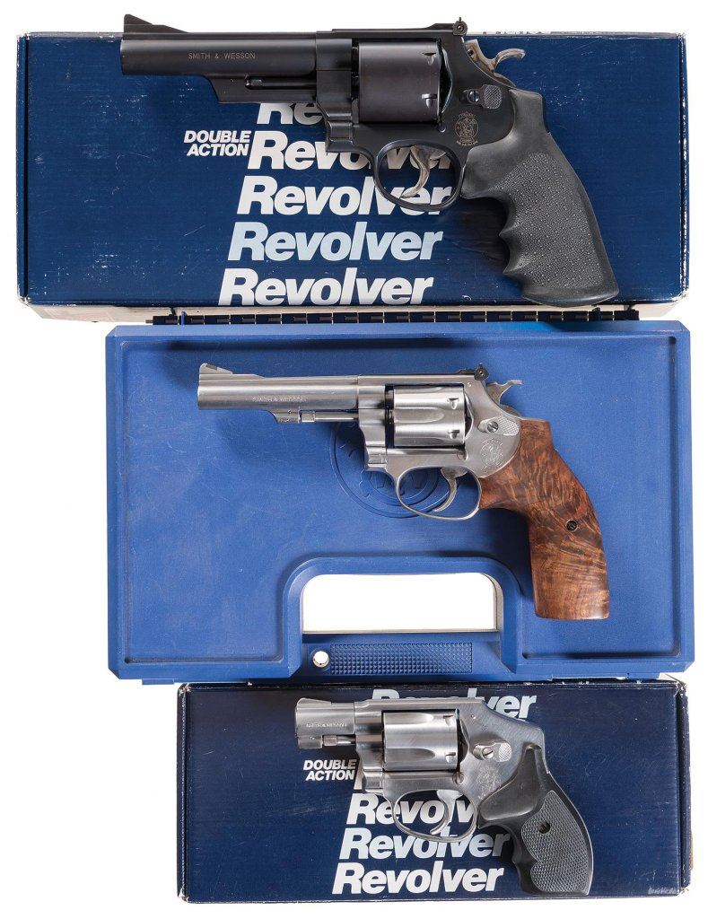 Three Smith & Wesson Double Action Revolvers -A) S&W Model 25-7 .45 Cal. Model of 1989 Revolver with Box