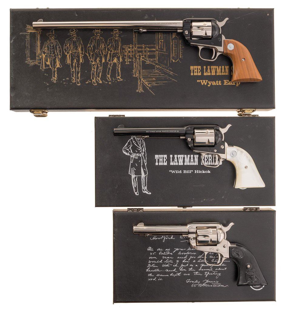 Manufactured in 1970. All three revolvers come in proper cases fitted to the guns with keys. This revolver also includes a Wyatt Earp pamphlet.