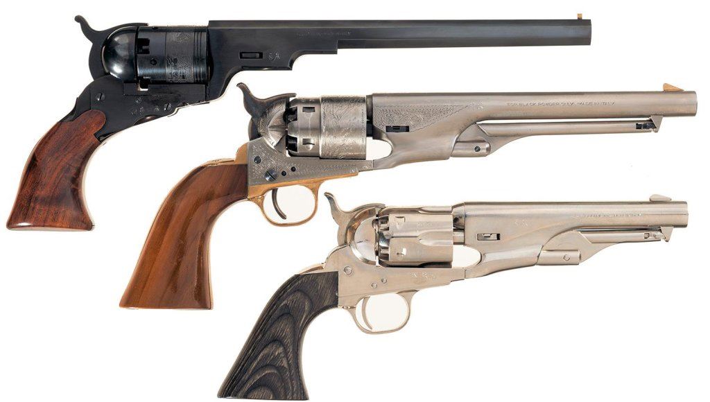 Lot 1053 Three Single Action Percussion Revolvers -A) F. LLI Pietta 1836 Texas Paterson Revolver with Case