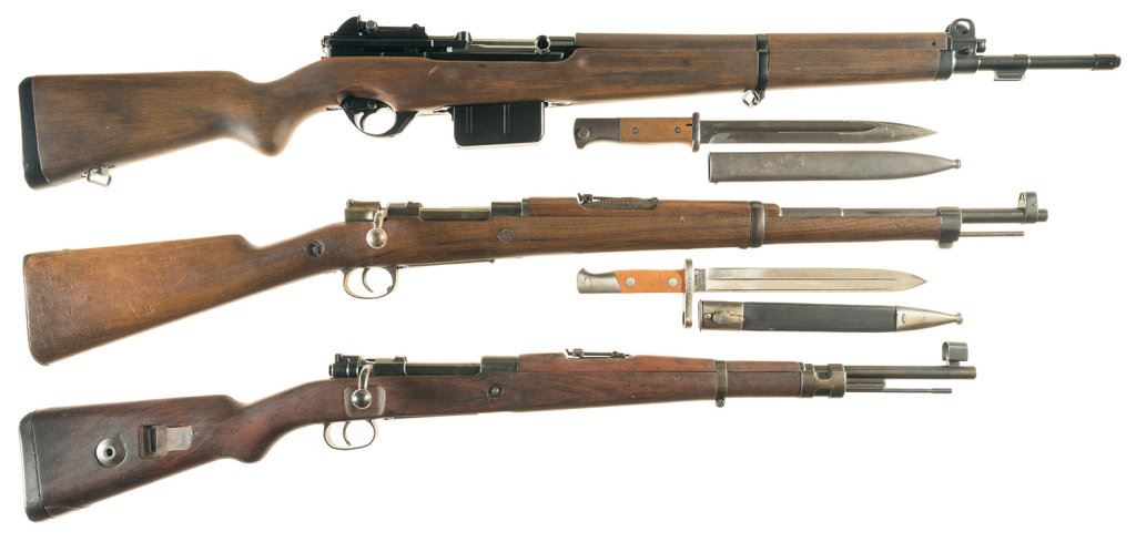 B) Spanish Model 1916 Mauser Bolt Action Rifle with Bayonet