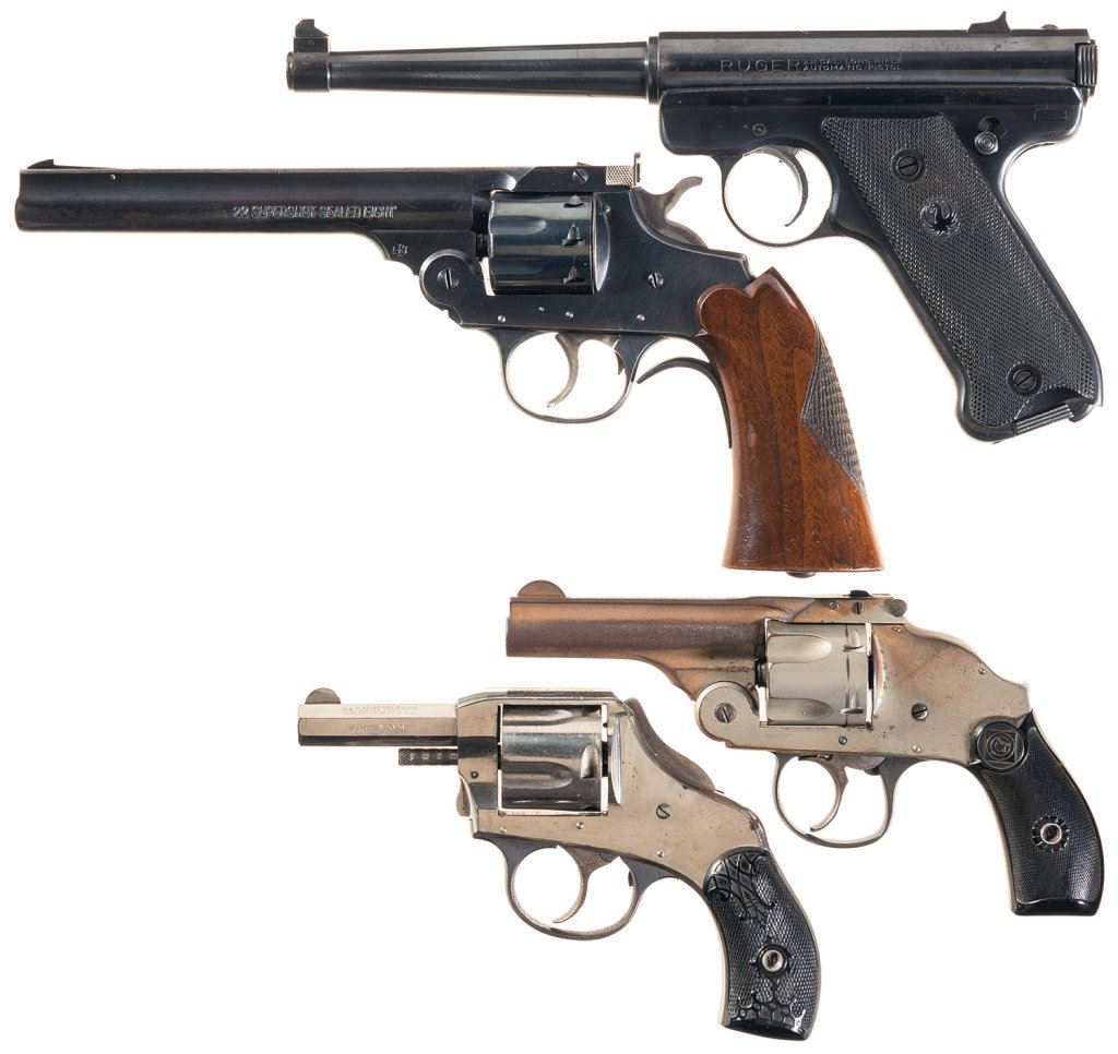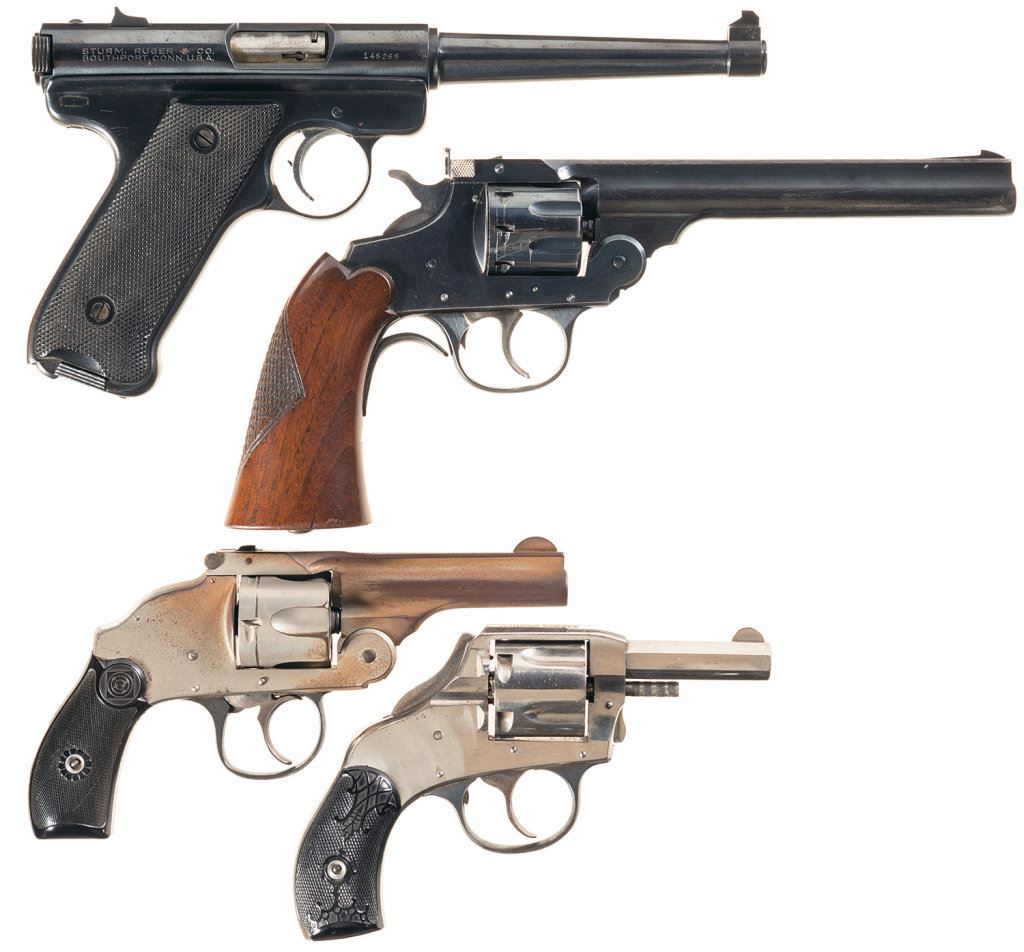 One Pistol and Three Revolvers -A) Ruger Standard Model Semi-Automatic Pistol