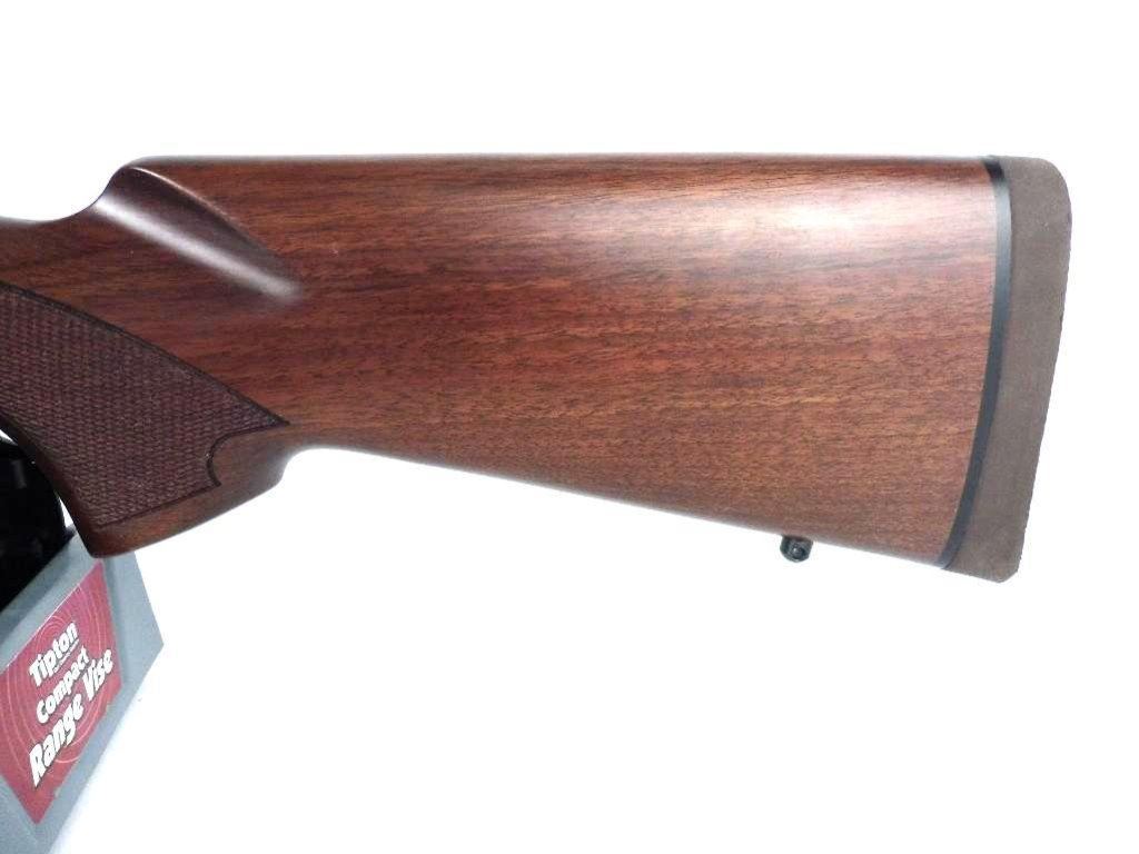 Has a hooded front sight post and adjustable rear sight post, smooth bolt, excellent trigger.