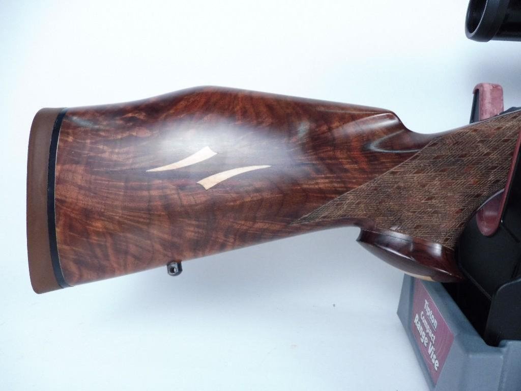 Built by a local master gunsmith, this is a one of a kind. Jewelled bolt, bolt release and lifter. Gorgeous inlays. High Monte Carlo cheek rest. Wetzlar 1.5-6x scope. Hand checkering.