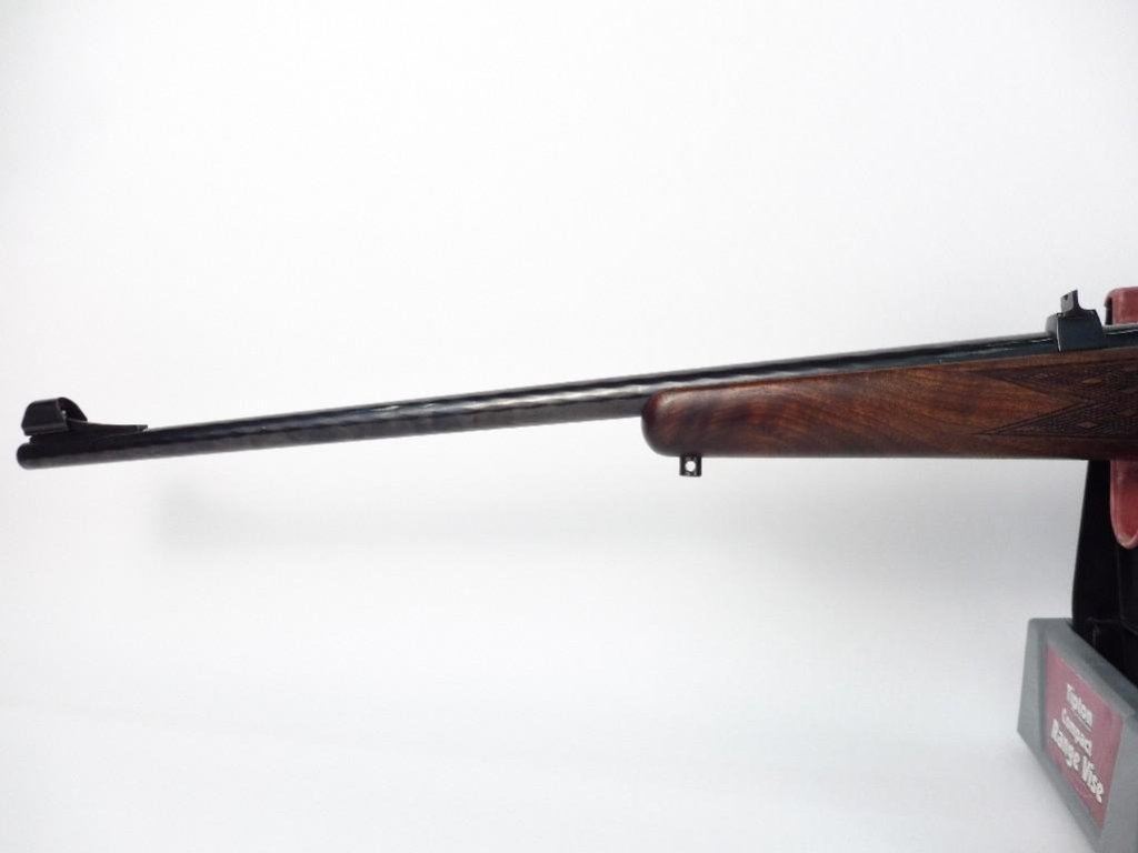 -Has set trigger and hooded front sight
