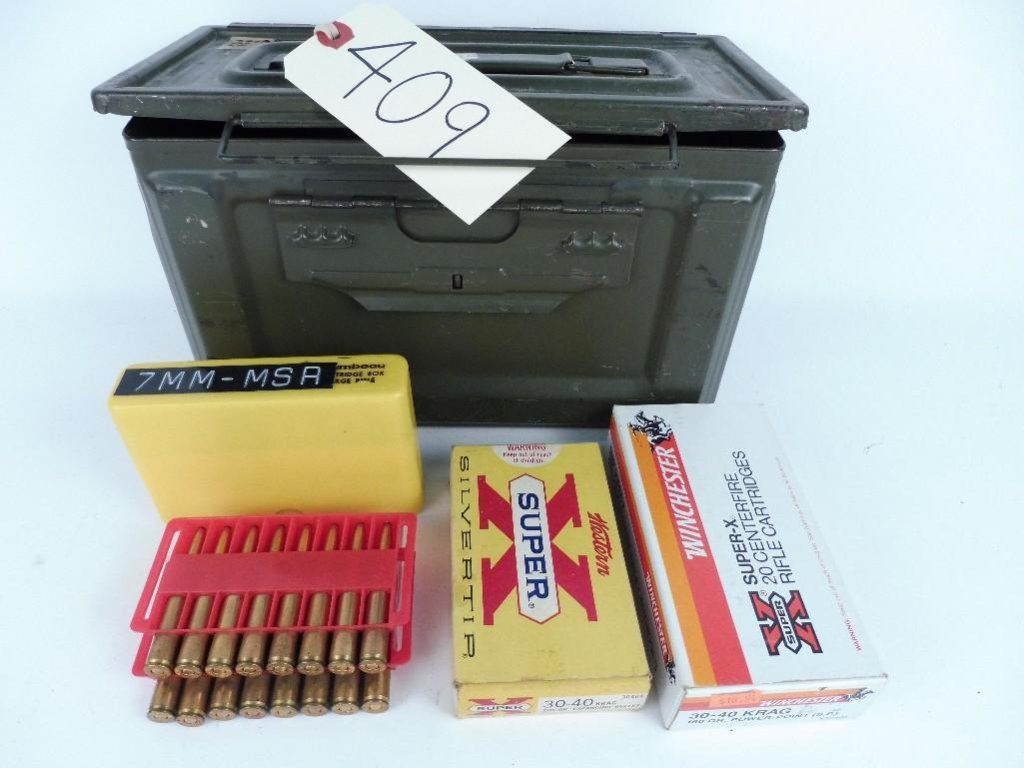 Lot 409 30 Rds. 30:40 Krag plus 30 Rds. 7mm Mauser with ammo box