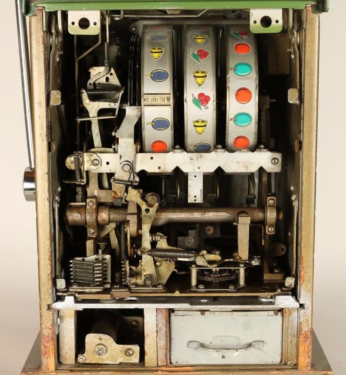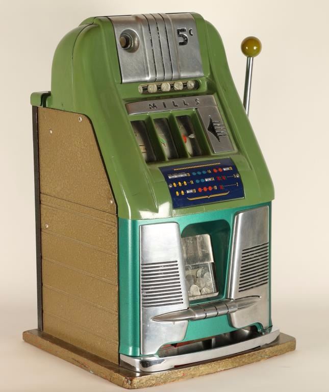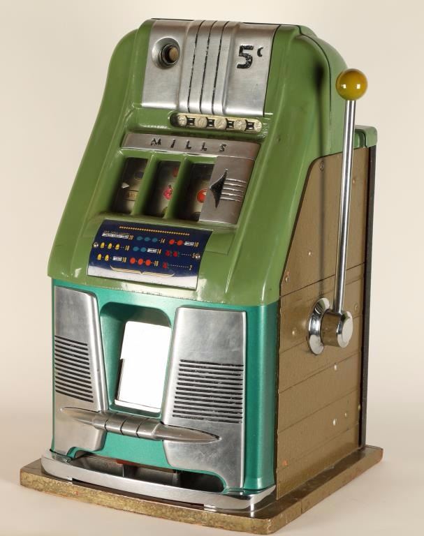 Two Tone Green Mills 5 cent slot machine, in beautiful all original working condition. Hard to find in original unrestored condition.