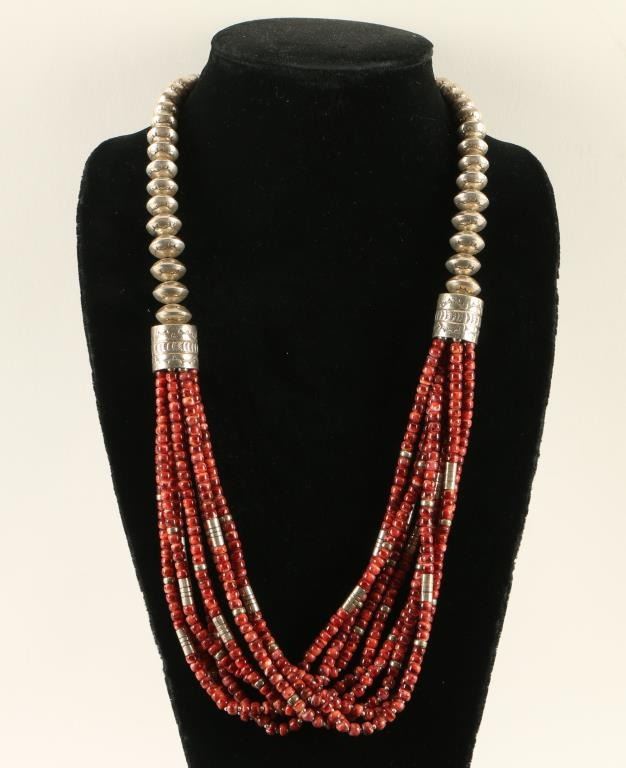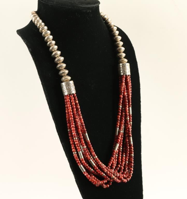 with hand made sterling silver stamped beads made by Tony Aguilar. Retail 2100.00
