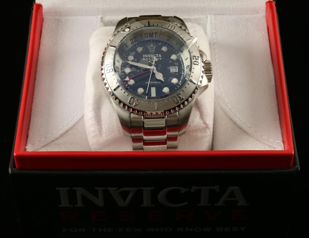 Pro Diver Hydromax Edition, model 16957. All stainless steel with Swiss made GMT flame fusion crystal. Excellent condition, retail $555, in original box.