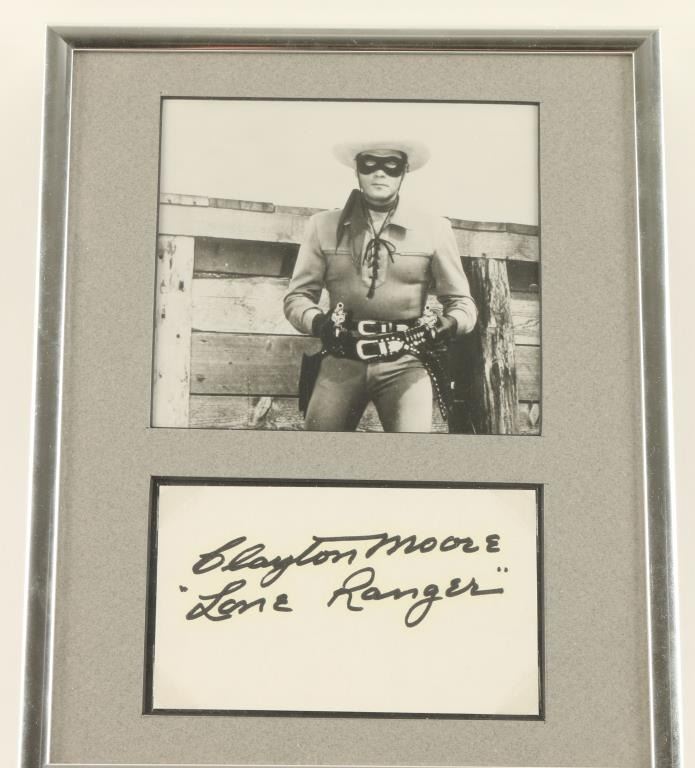 Matted and framed photo of Clayton Moore as the Lone Ranger with autograph below. 8 1/2" x 101/2".