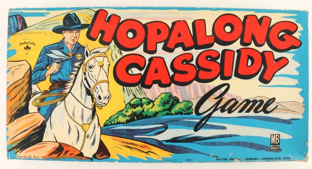 Unused, still has all the diecast metal pieces of cowboys on horseback, printed discs, play money and spinner. Board is in very good condition. Box shows some wear.