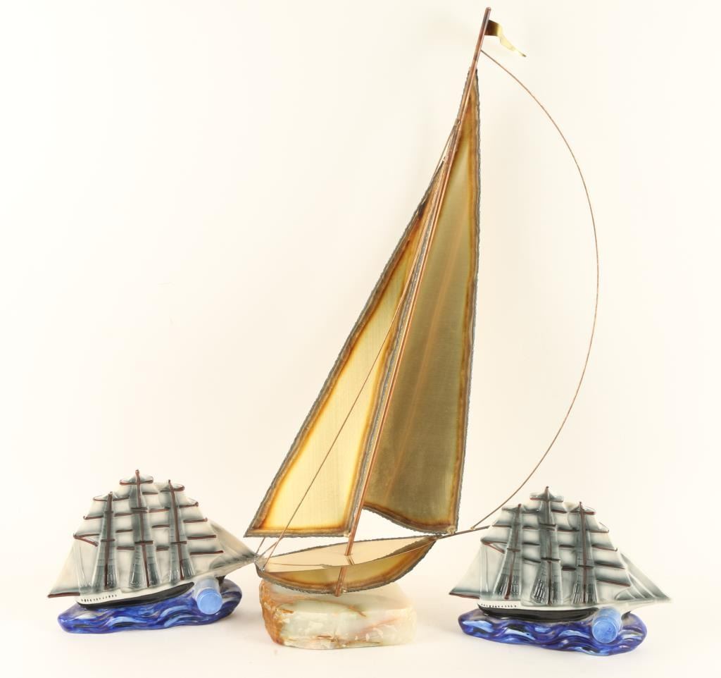 Lot 557 Burnished Metal Tall Mast Sailing Boat