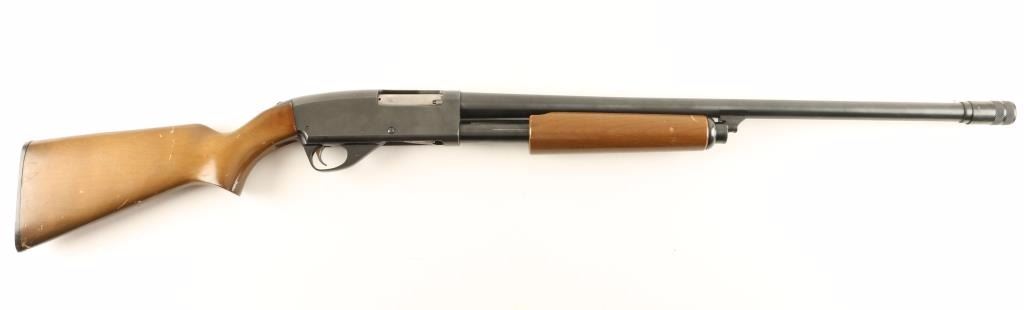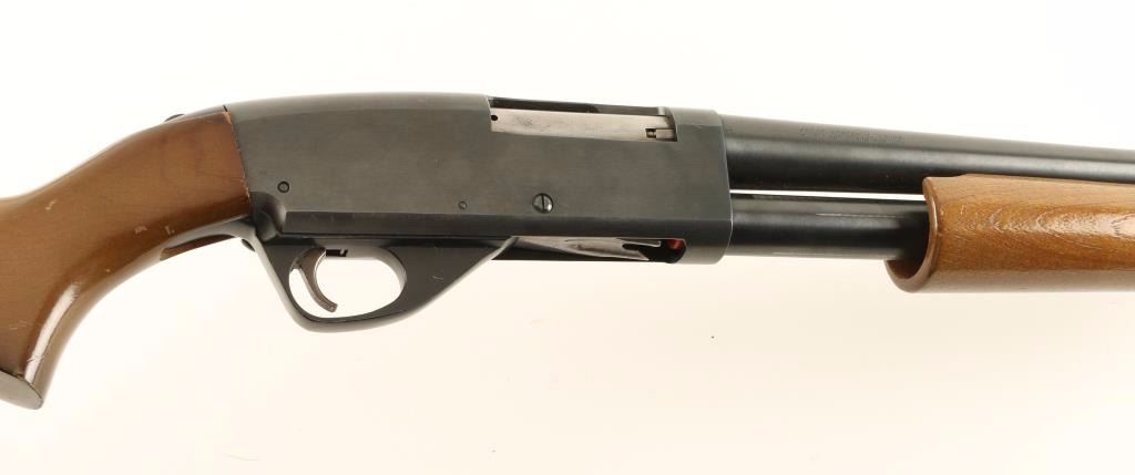 Tube ref slide action shotgun marketed under Springfield and chambered foe 2 3/4" & 3" 12 gauge shells. Features a blued finish, 24" barrel with adjustable choke. bead front sight, 1/2 tube magazine, smooth trigger, sliding safety switch, smooth woos slide handle and pistol grip shoulder stock with serrated black plastic buttplate. Shotgun exhibits approximately 90% of it's original blued finish showing only light wear. Action is smooth, bore is dirty, and wood stock shows many small losses. Condition is very good. ***Modern Firearm***