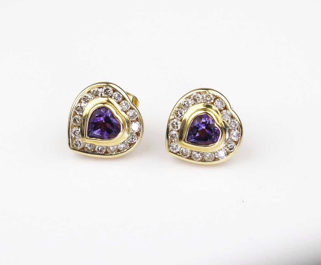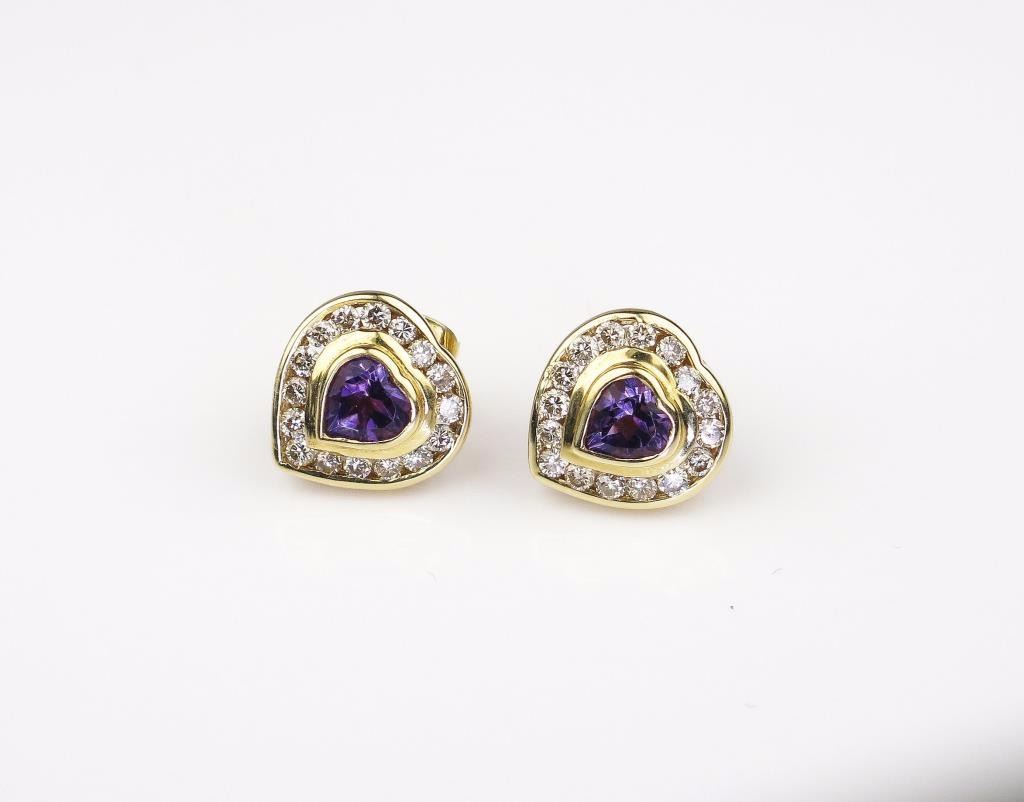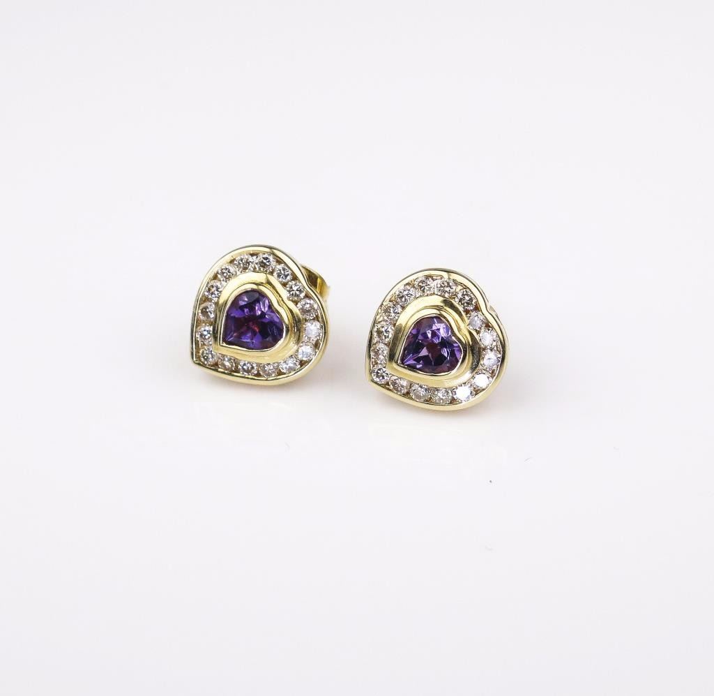 Set with Amethyst and channel set with 32 round 'IDEAL' cut Diamonds weighing approx. 0.30 carats of G-H colors and VS/SI clarity set in 14 karat yellow gold settings.