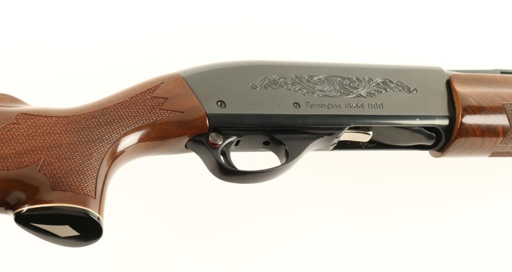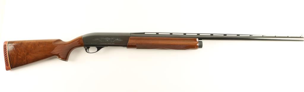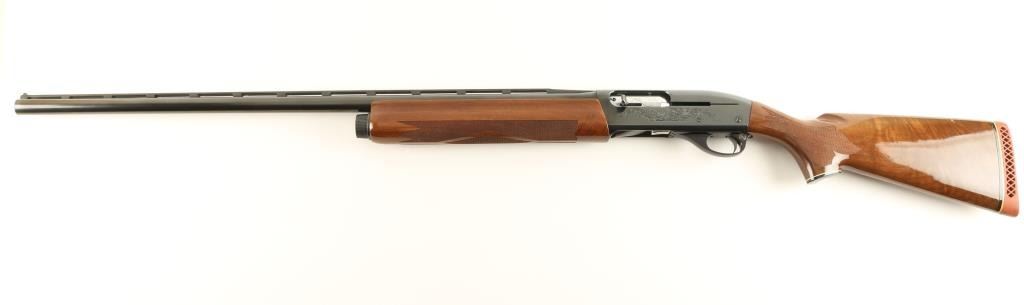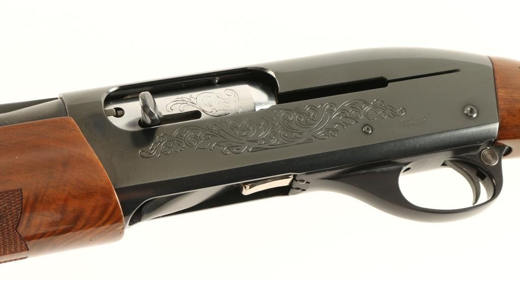 Left handed semi-automatic trap shotgun chambered for 2 3/4" shells. Features a blued finish, 30" vent ribbed barrel with removable chokes, bead sights, engraved receiver, push button safety, serrated charging handle and checkered select walnut stocks with rubber recoil pad. Shotgun exhibits approximately 95% original finish with few minor losses and rust forming in the serrations of the ventilation rib close to the receiver. Action is crisp, bore is very good and wood stocks are near fine with few imperfections. Condition is very good+. ***Modern Firearm***