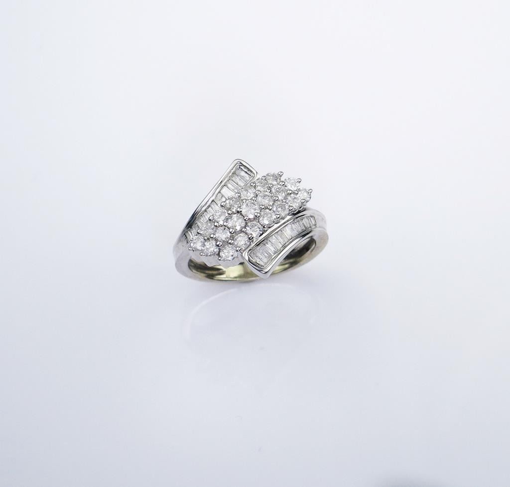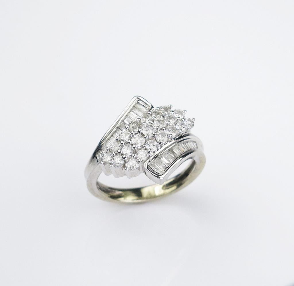 With over 40 round and baguette cut diamonds weighting approx. 1.00 cart of F-G colors set in 10 karat white gold setting. Retail $1,500-$2,000