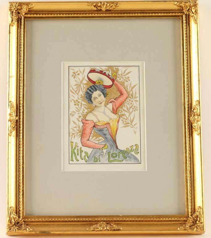 "Kita Di Lorenza" by Count Regiey De Koenigsegg 1823-1904. Image measures 3 7/8"x5 1/8" with a single mat and fancy gold wood frame with molded details. Retail $225.
