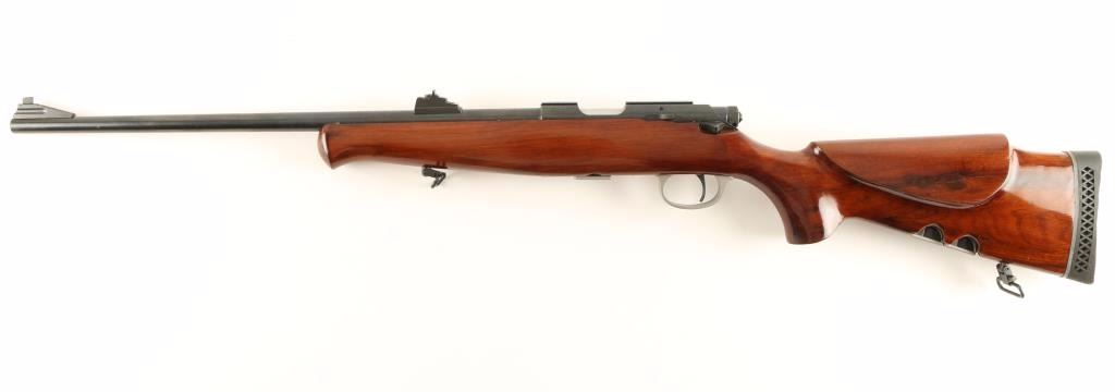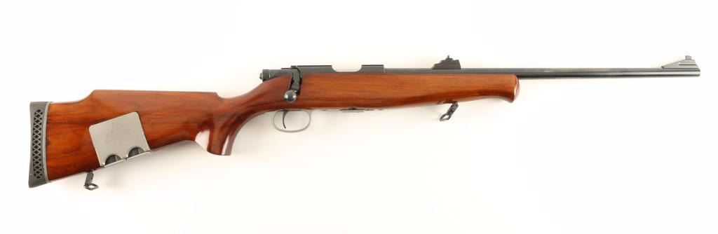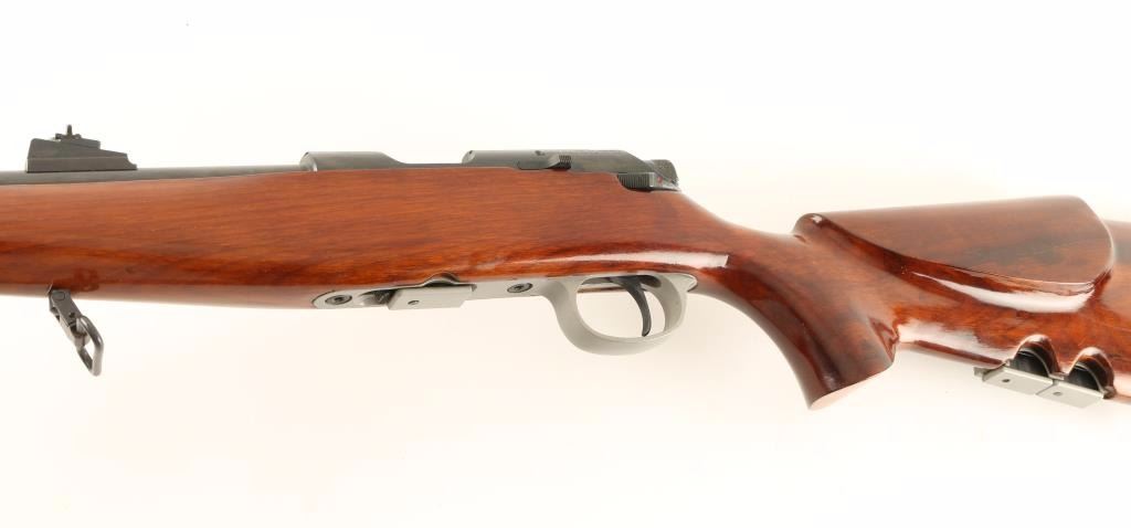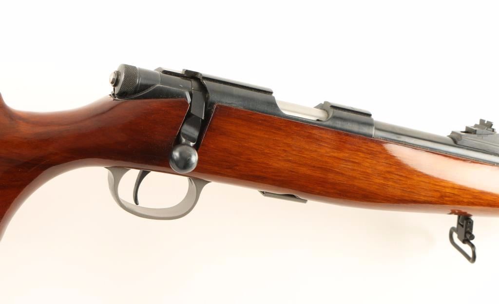 Chinese made magazine fed bolt action sporting rifle chambered in .22 Long Rifle. Features a blued finish, 20" tapered barrel, ramped blade front sight, adjustable sliding rear sight, integral scope rail cut into receiver, brush finish bolt with bent bolt handle, sliding manual safety, serrated trigger, quick release sling swivels, Monte Carlo style wood stock with two extra magazine and rubber recoil pad. Includes original shipping box. Rifle exhibits approximately 95% of it's original finish with light wear from storage. Action is smooth, bore is excellent and wood stock is fine. Condition is near excellent. ***Modern Firearm***
