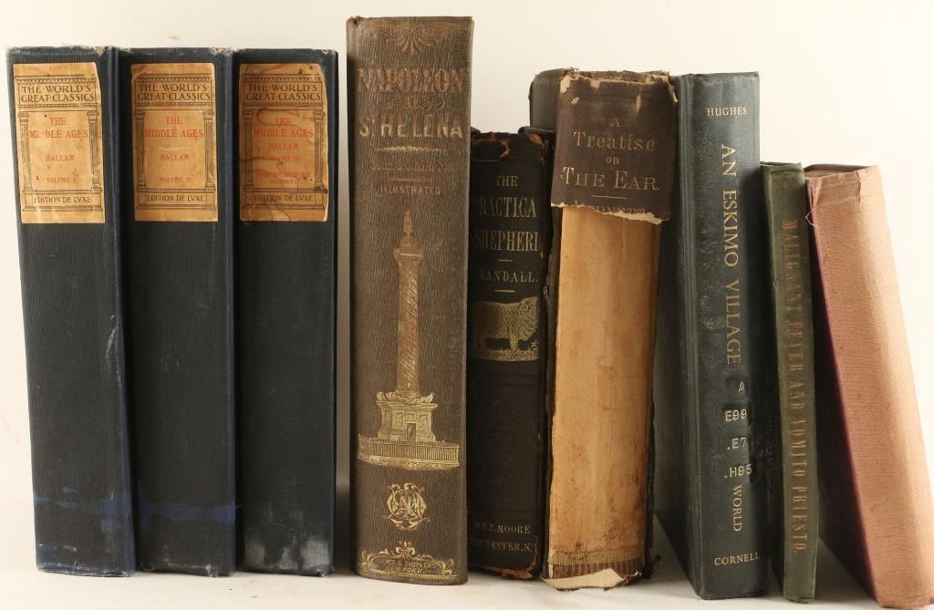 Including; "Lord of Alaska" by Hector Chevigny, "An Eskimo Village in the Modern World" by Charles Campbell Hughes, "Napoleon at St. Helena" by John S.C. Abbott, "The World's Great Classics" by The Colonial Press-three volumes, and more.