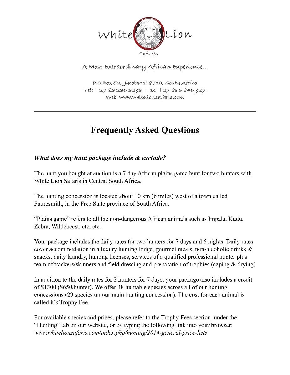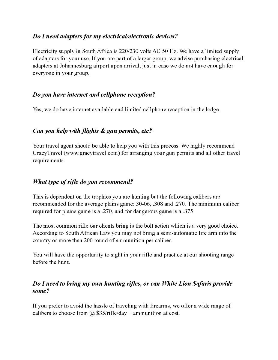 Lot 6 T-6 7 DAYS FOR 2 HUNTERS WITH WHITE LION SAFARIS IN RSA 2016-17