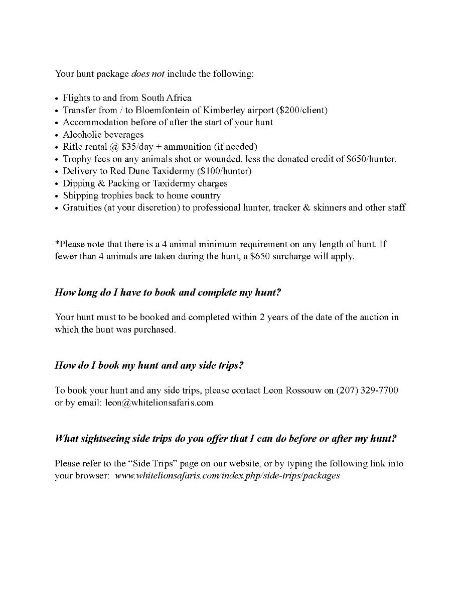 Also included in donation: $650 creditper hunter towards trophy fees. 1