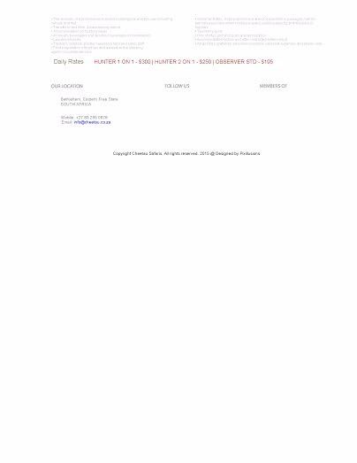 Lot 16 T-16 10 DAY DAILY RATE FOR 4 HUNTERS OR 2HUNTERS & 2 OBSERVERS W/ CHEETAU SAFARIS IN RSA2016-17