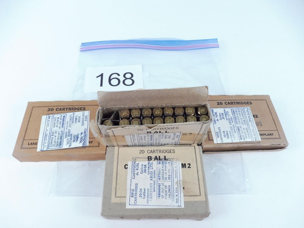Lot 168 80 rounds 30-06 military WRA 1957