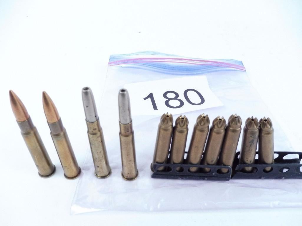 Lot 180 7 rounds 303 blanks in stripper clips, 2 rounds 303 military, 2 rounds 303 220 grain hollowpoint