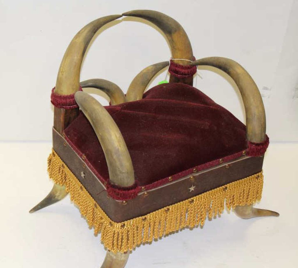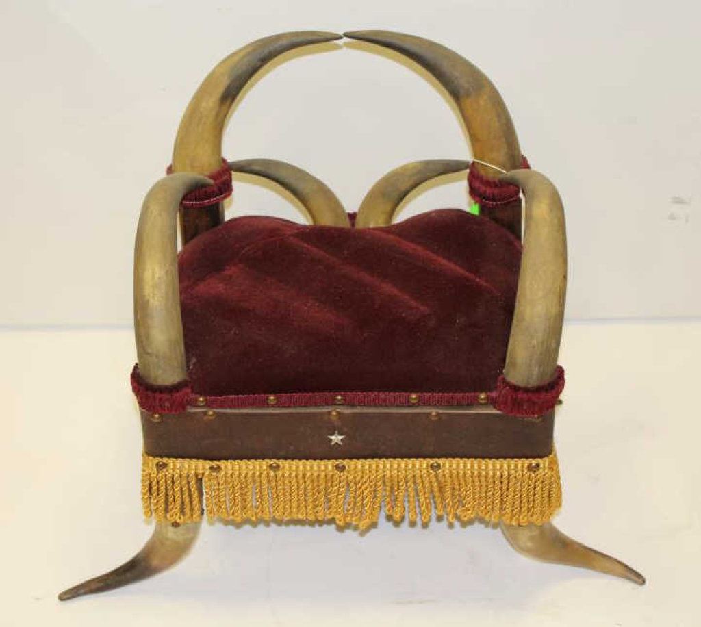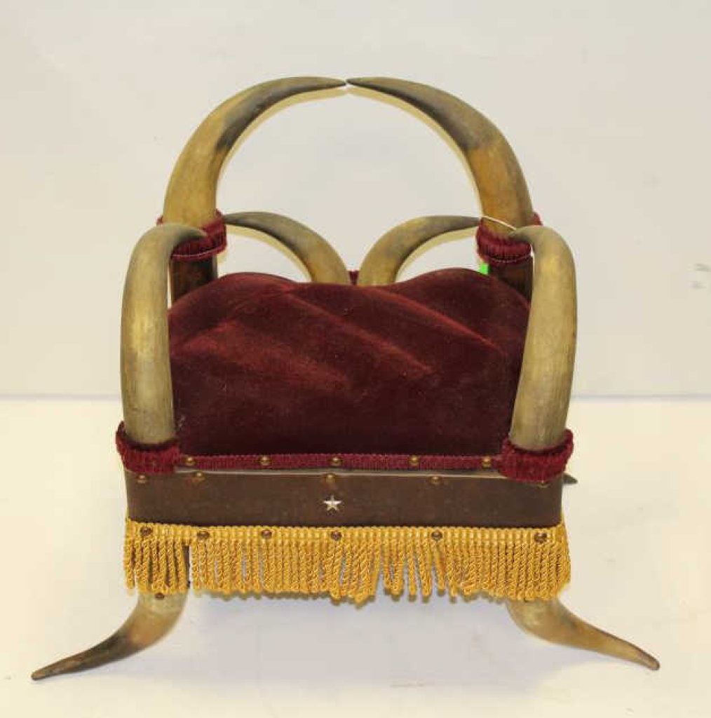 Lot 50b Childs horn chair with velvet and tacks. Good