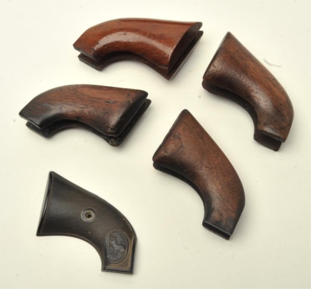Single Action Army revolvers and a right only checkered hard rubber grip. Est.: $400-$800.