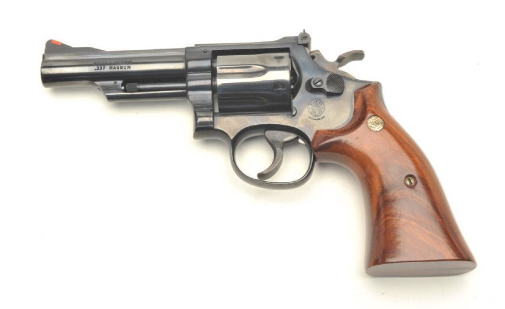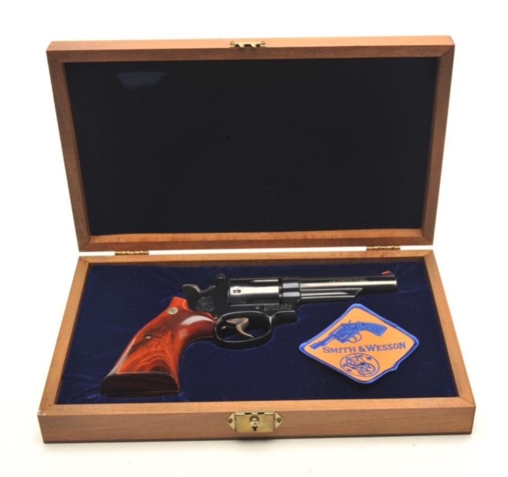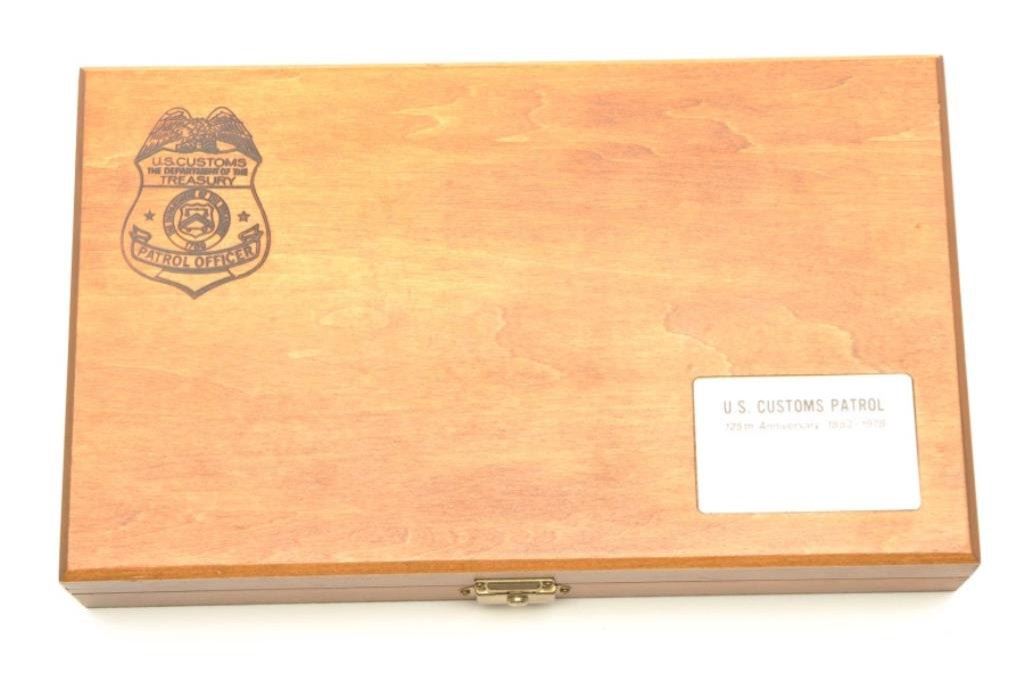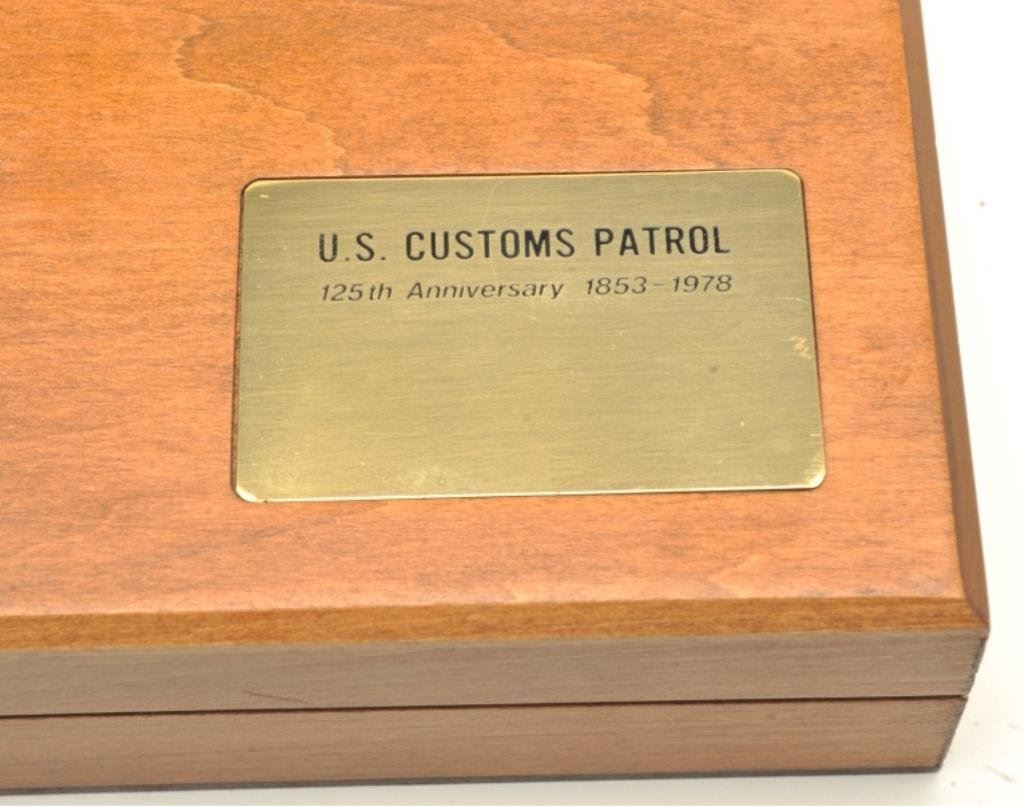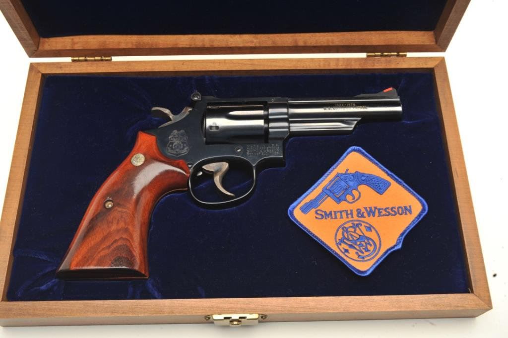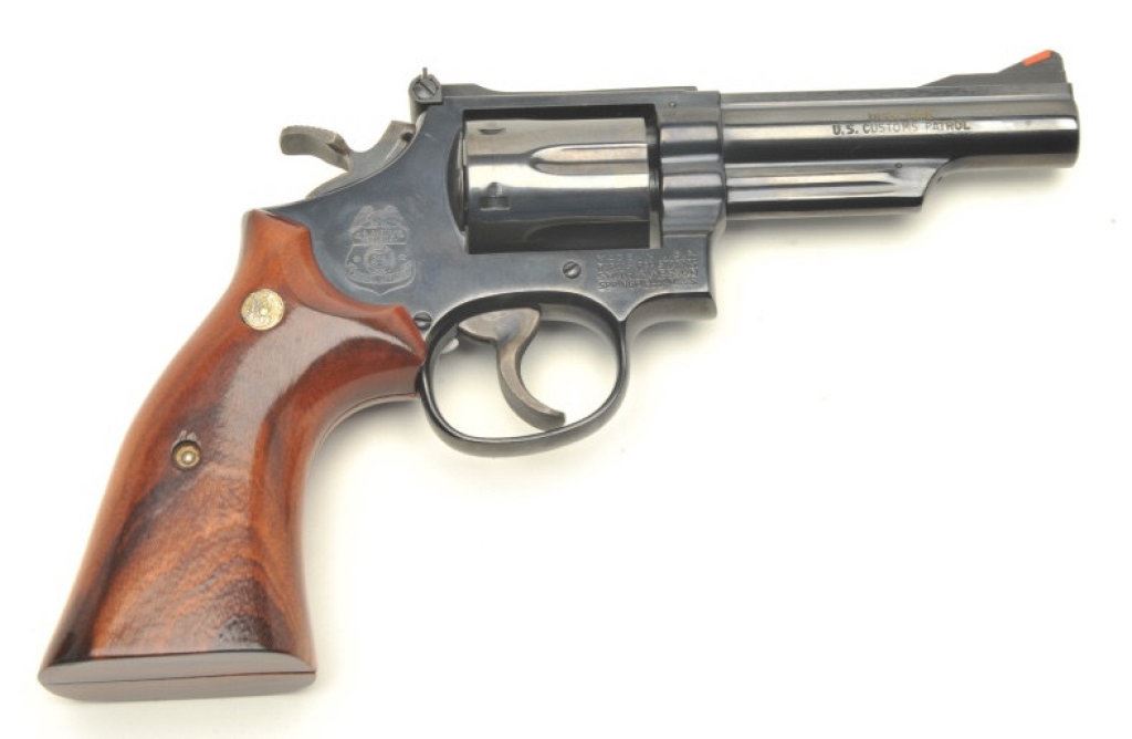19-4 DA revolver, U.S. Customs Patrol Commemorative (1853-1978), .357 Magnum caliber, 4” barrel, blued finish, smooth wood medallion combat grips, S/N 65K5687, in overall near new condition. (Modern/PPT). Est.: $750-$1,500.