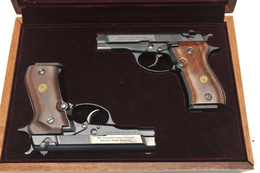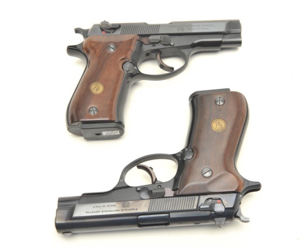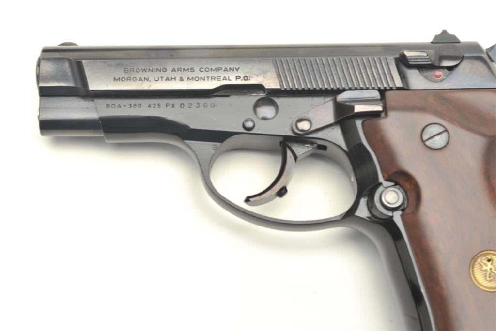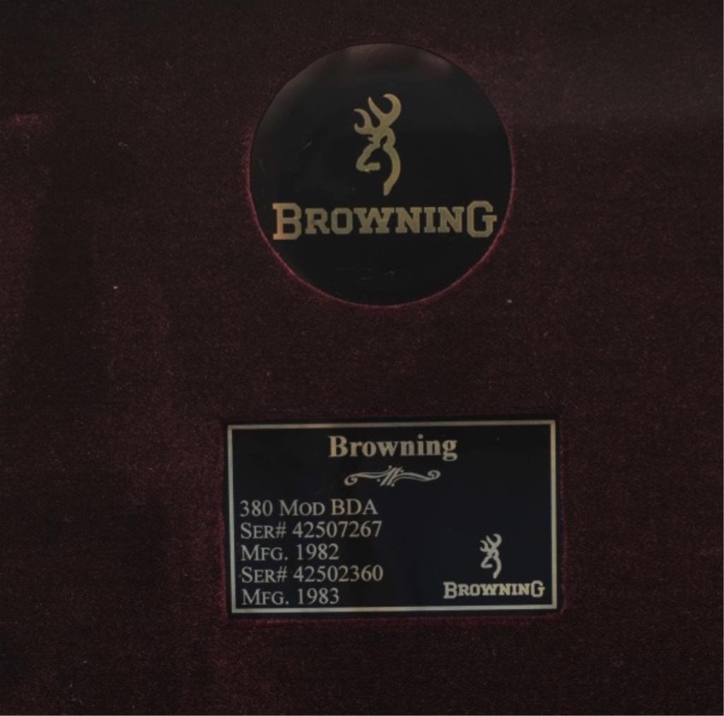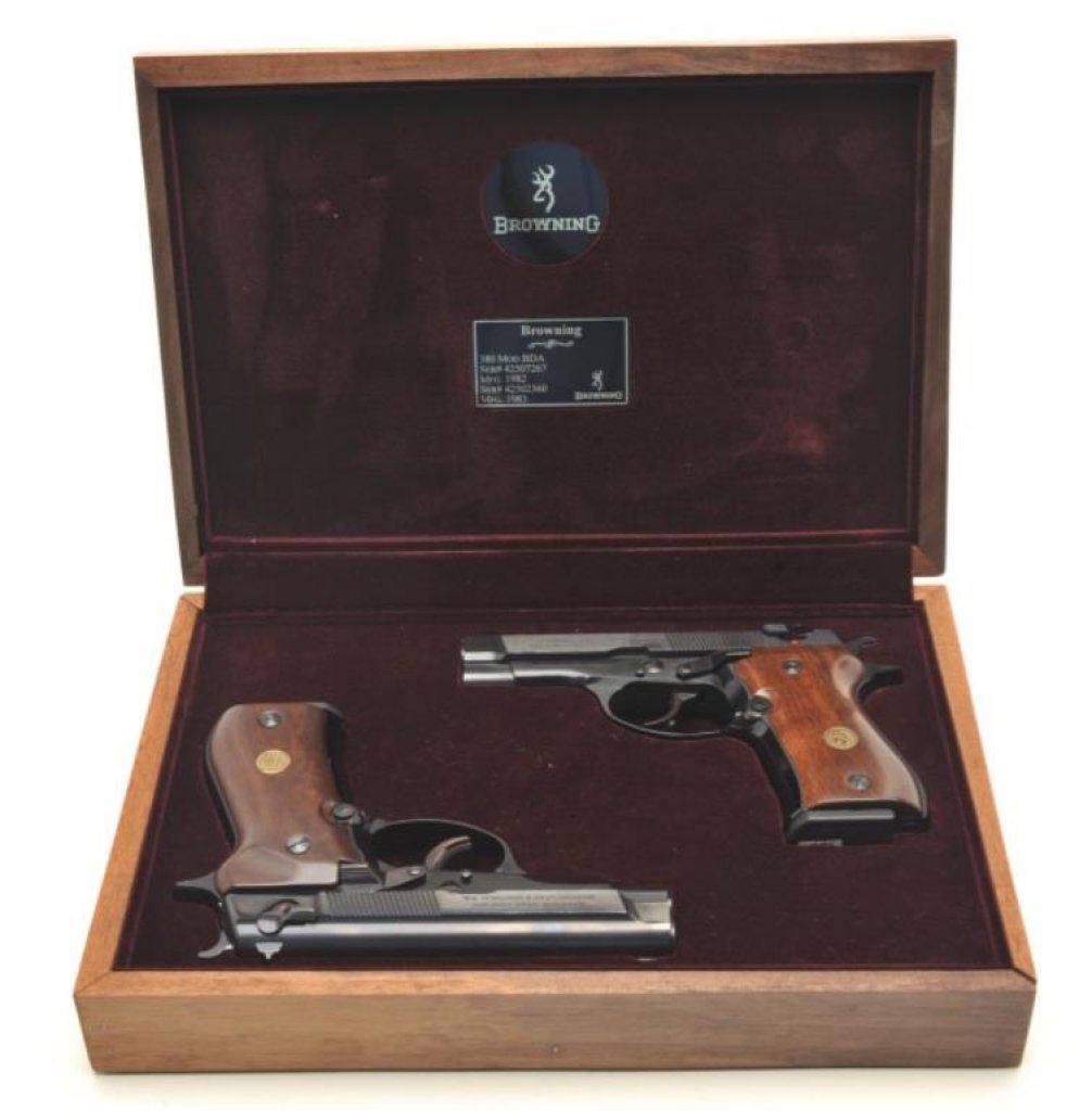 Model BDA DA semi-automatic pistols, .380 caliber, 3.75” barrels, S/Ns 425PX02360 & 425PY07267, blued finish, wood medallion grips, in overall near new condition. (Modern/PPT). Est.: $800-$1,600.