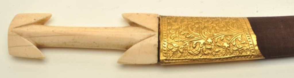 blade, walrus ivory grip and fancy sheath; approximately 18.5” overall with 12” curved blade; overall very good condition. Est.: $1,250-$2,500.