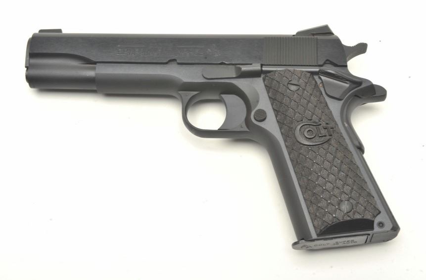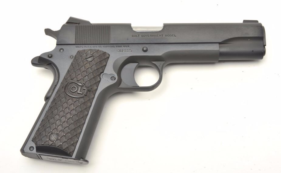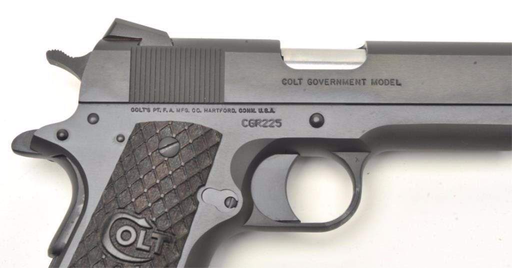 of 300) semi-automatic Government Model pistol, .38 Special caliber, 5” barrel, S/N CGR225, deluxe Colt grips; near new condition overall and accompanied by a factory blue hard case with end label numbered to this gun. (Modern/PPT). Est.: $1,250-$2,500.