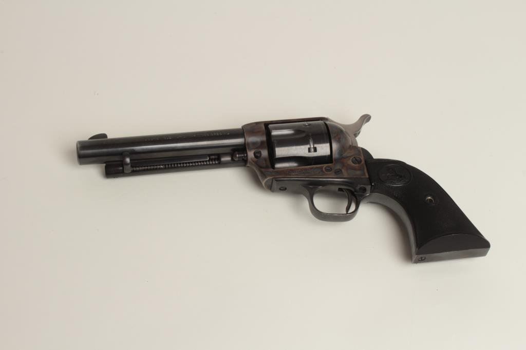5.5” barrel, blued and case hardened finish, checkered hard rubber grips, S/N 10381SA, in overall fine to excellent condition showing slight high point and muzzle wear, otherwise approximately 98% original finish, fine bore, action, markings and grips. (C&R/PPT). Est.: $1,400-$2,800.