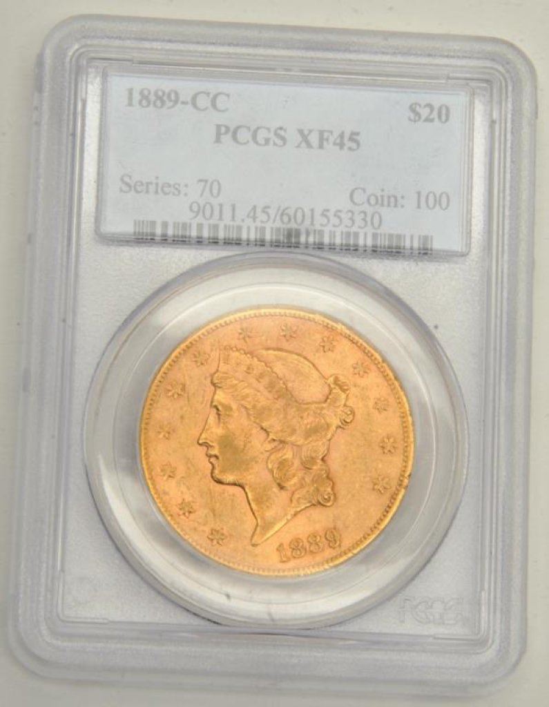 Lot 135 $20 U.S. gold coin, PGCS graded XF 45