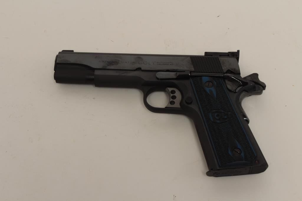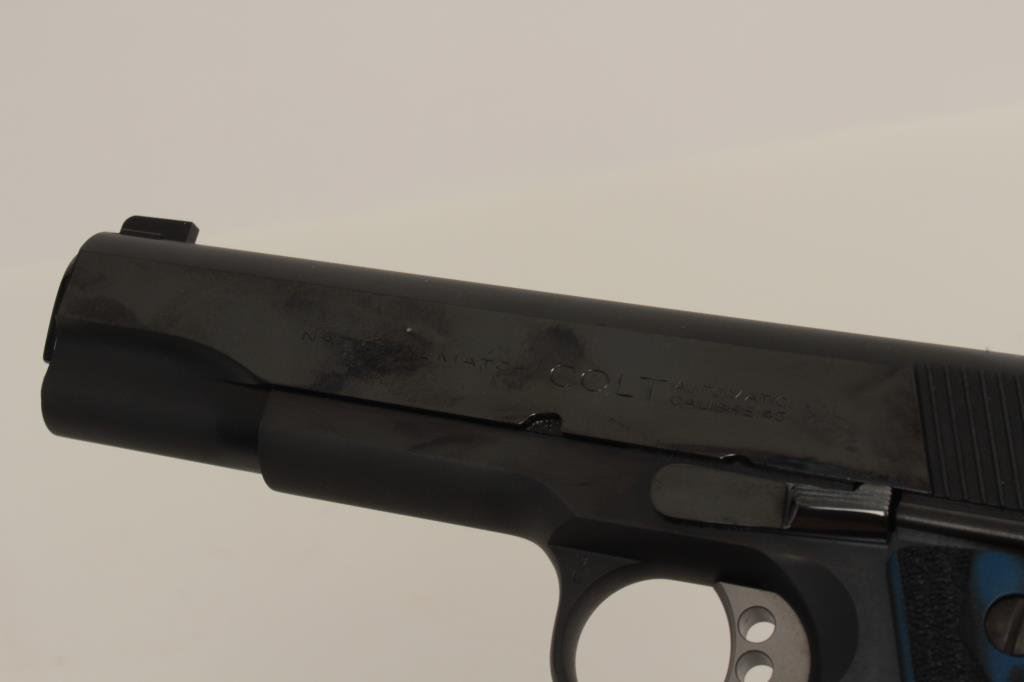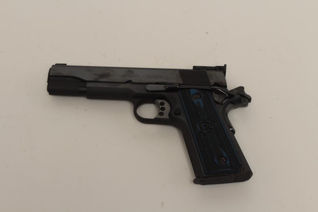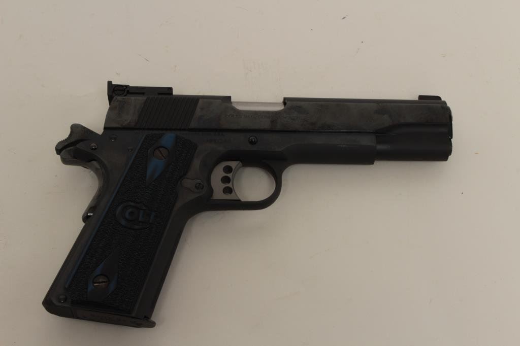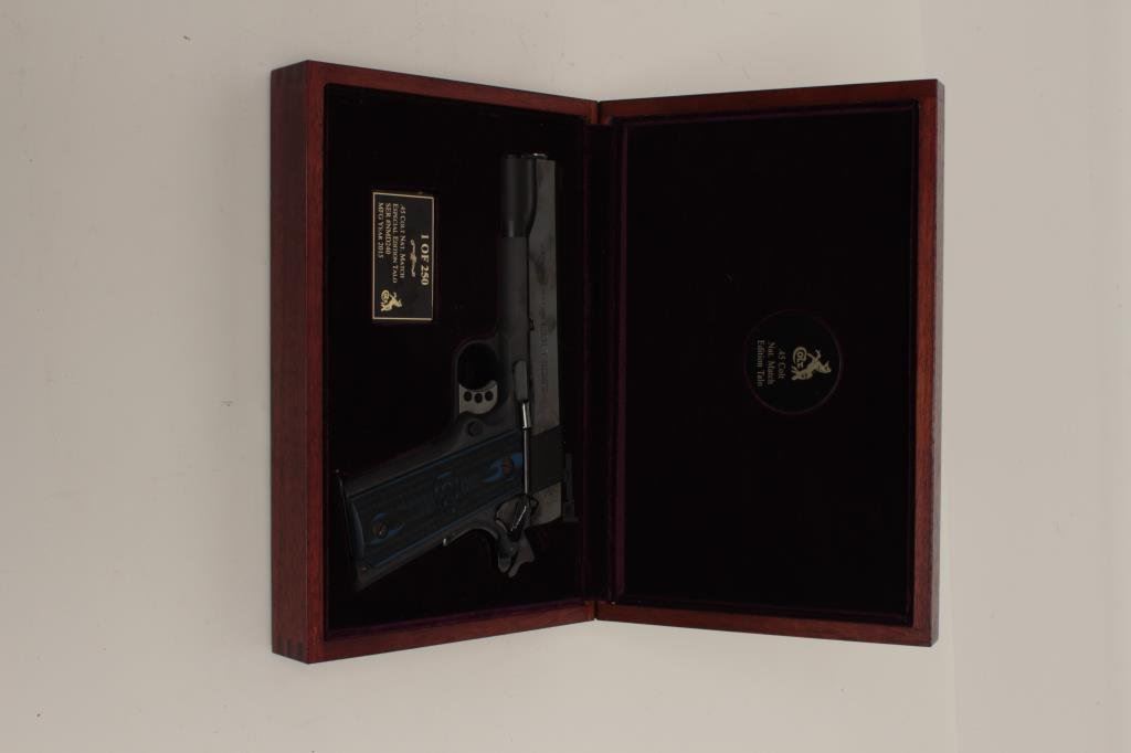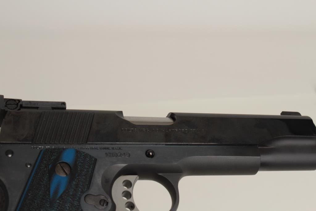 of 250) National Match semi-automatic pistol, .45 caliber, 5” barrel, blued finish, stippled Colt special grips, S/N NMD240, in near new condition. (Modern/PPT). Est.: $2,000-$4,000.