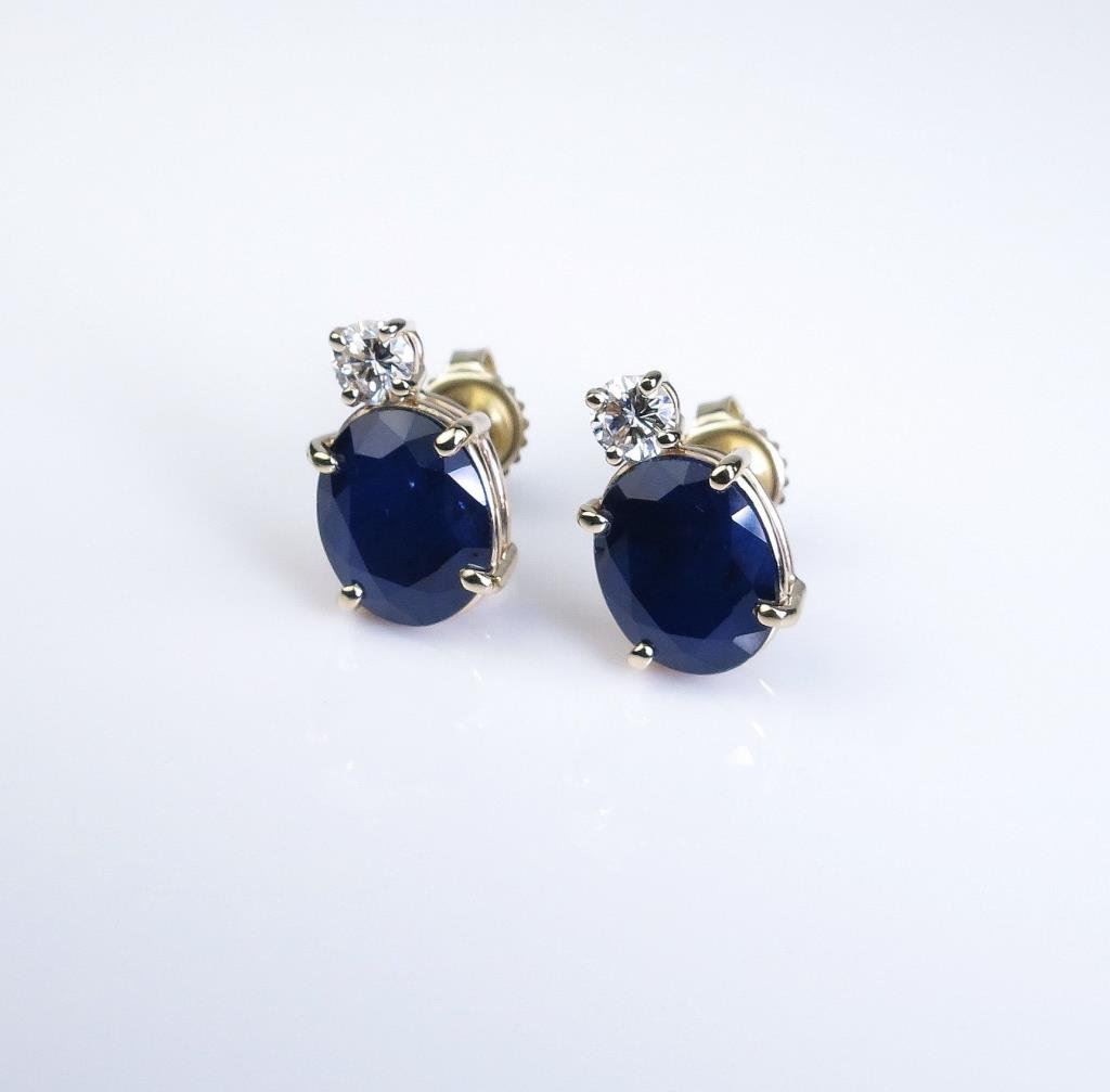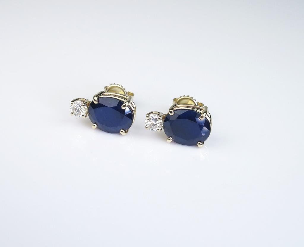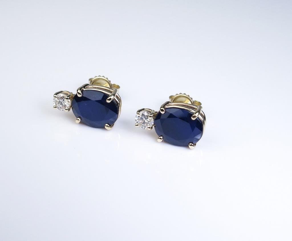 Sapphires weighing 8.60 carats and two matching ‘IDEAL’ cut diamonds weighing 0.56 carats of F-G colors and VS clarity set in 14 karat yellow gold custom made settings. Retail $4,000-$6,000 Estimates $2,000-$3,000
