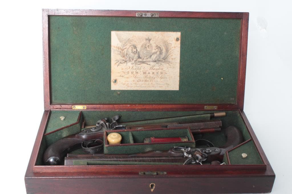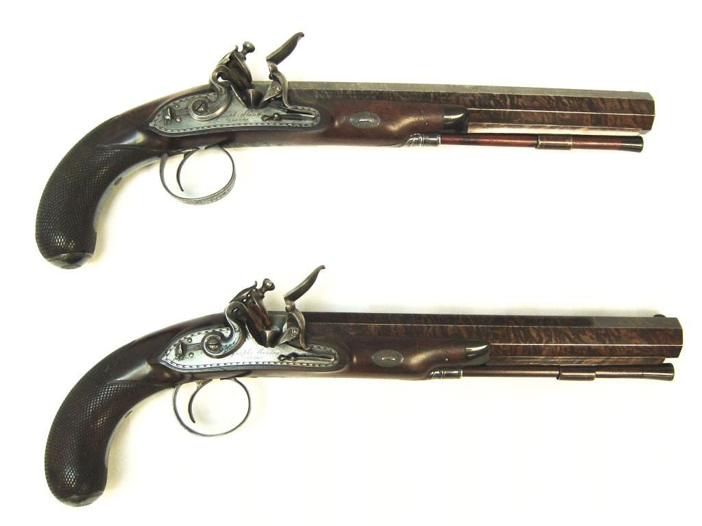 Lot 219 Pair of flintlock dueling pistols by Joseph Manton