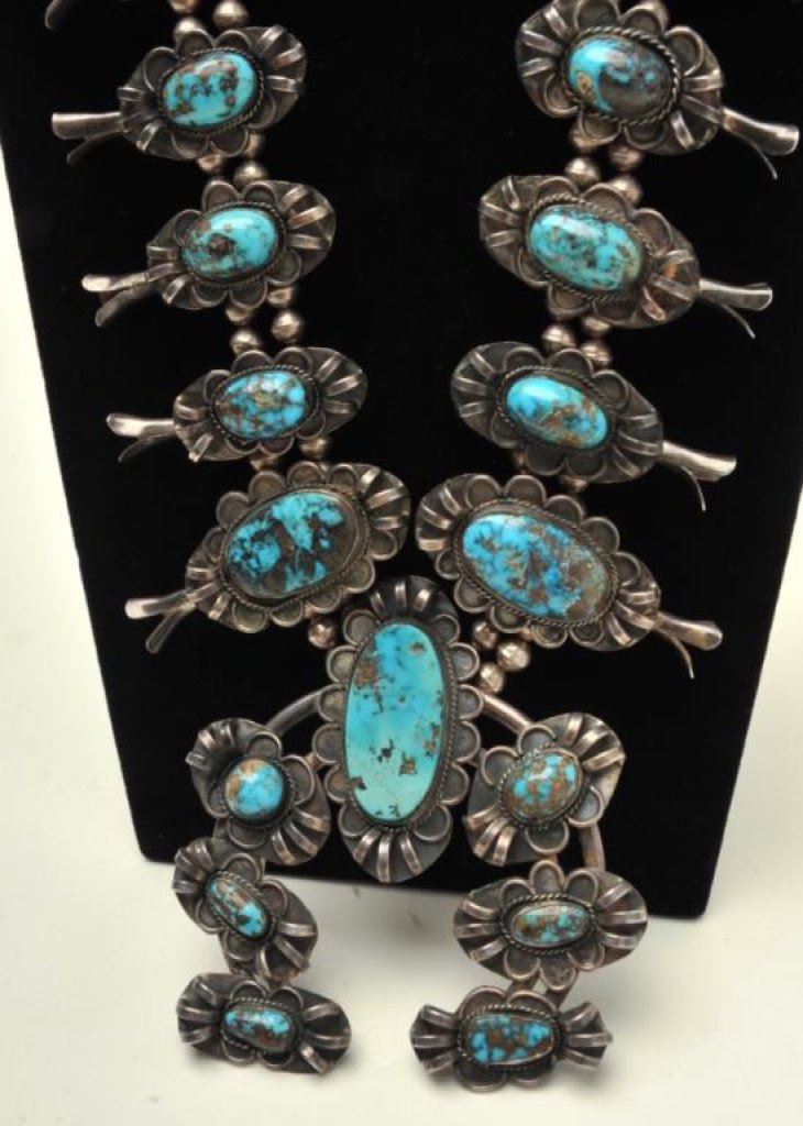 Silver and set with Turquoise with a 4" horseshoe Pendant. Est.:$1,500-2,000