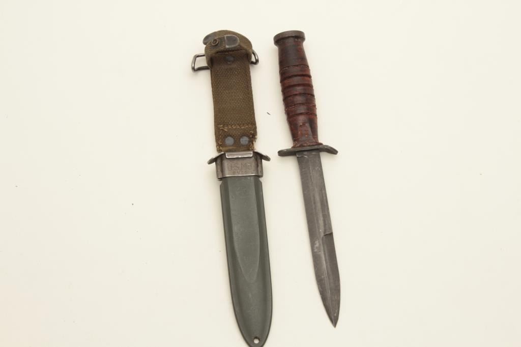 M3 Ithaca” on the guard. Knife is near fine. Scabbard marked “U.S. M8” by B.M. Co. in very god condition. Est.: $200-$400