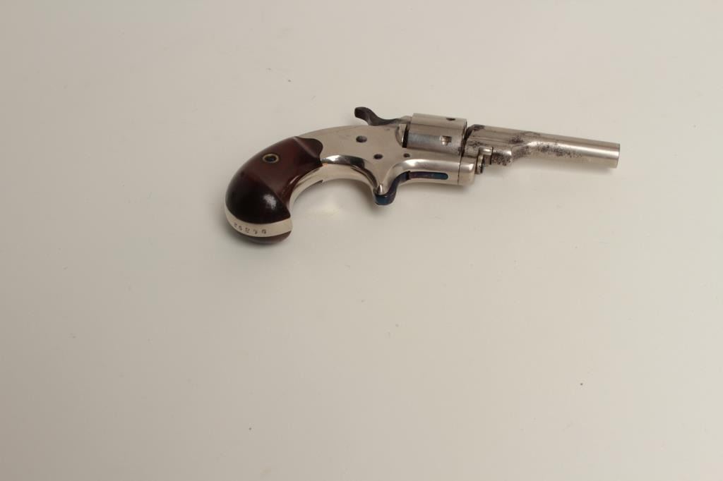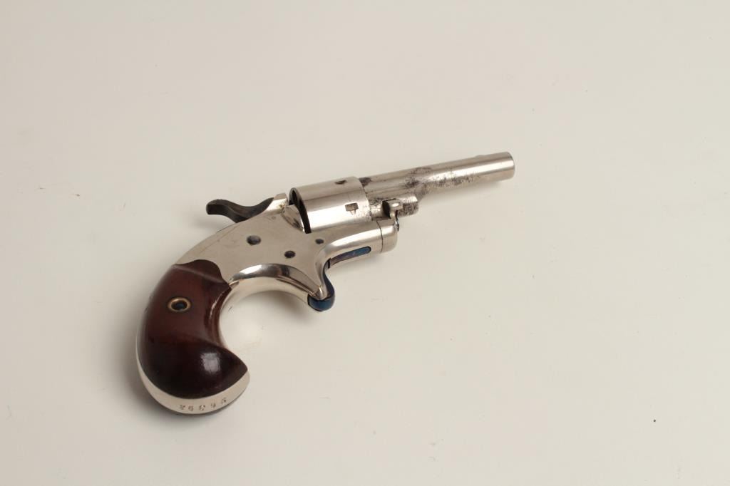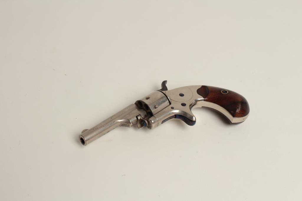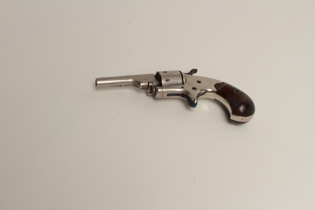 revolver in .22 caliber, S/N 96392. 85%-95% original nickel with brilliant fire blue screws. Some erosion beginning at the muzzle with near fine grips. A strong 8 on a 1-10 scale. (Antique) Est.: $250-$500
