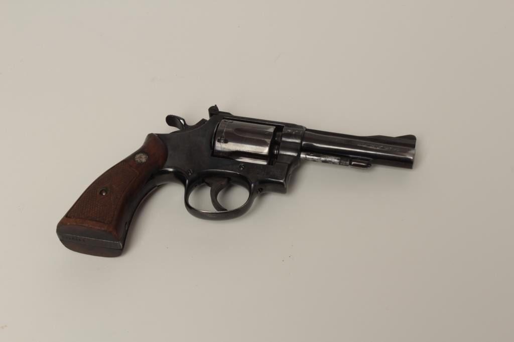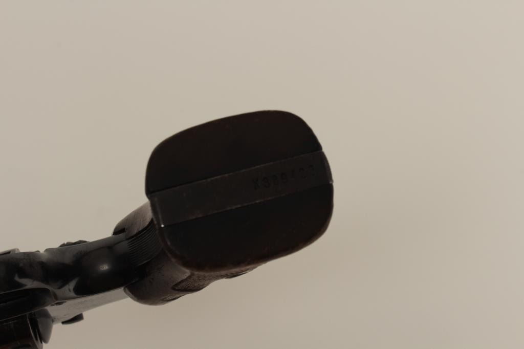 Action Revolver with 4” barrel, blue finish, checkered wood grips, S/N K389422 showing old refinish of which 80% remains. The hammer has been altered to a beavertail custom and the action has been worked. The bore is great. An old “Cop gun” when the Combat Masterpiece was king (1960s-70s). (Modern/PPT) Est.: $250-$500