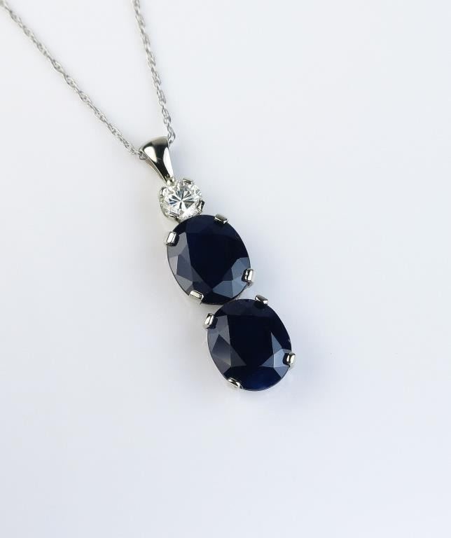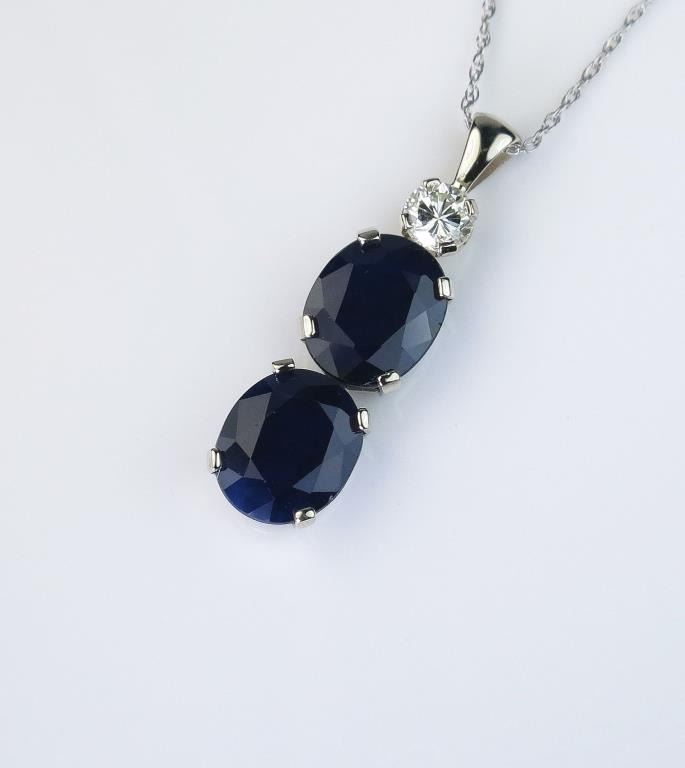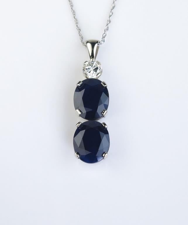 Lot 356 Elegant ladies pendant featuring two oval blue Sapphires