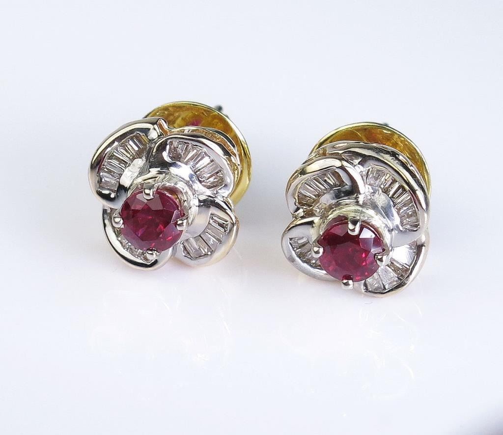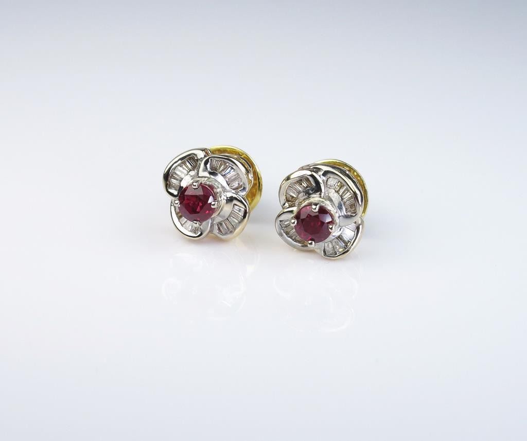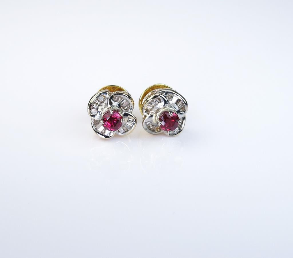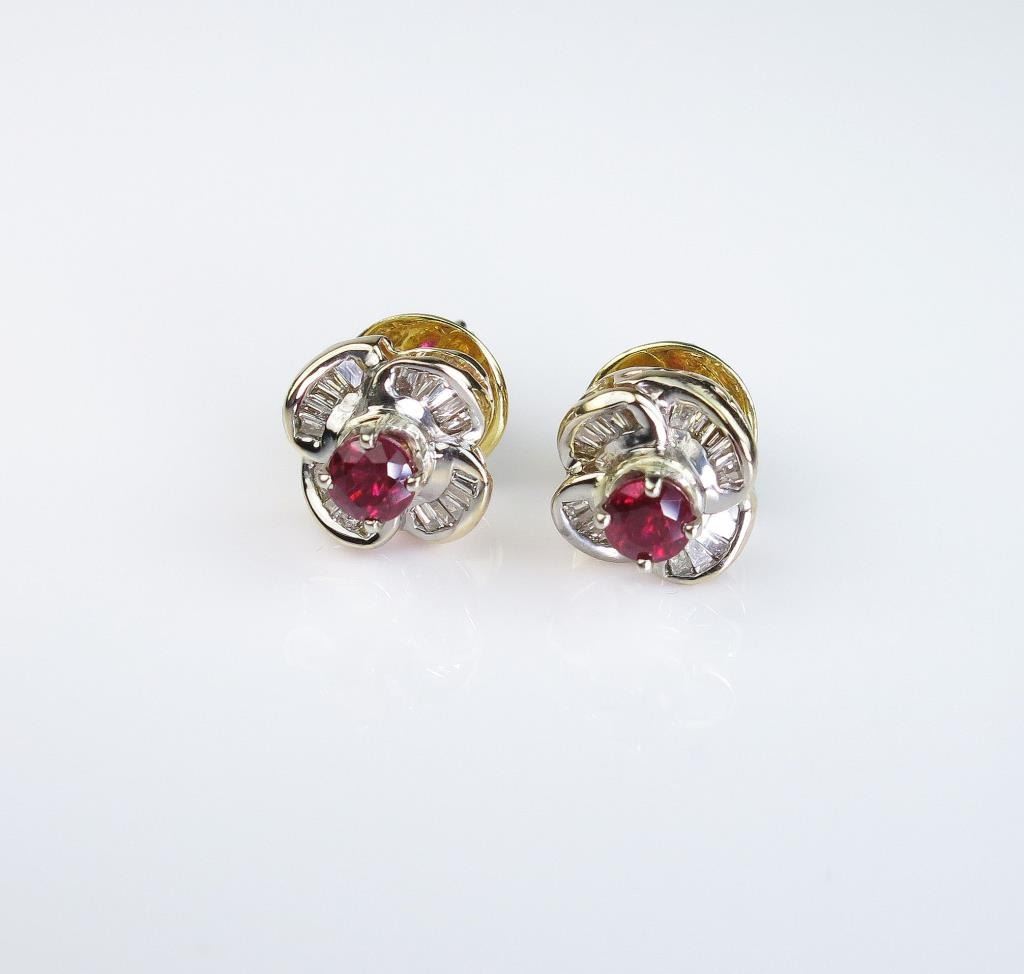 Lot 373 Colorful ladies earrings featuring two Burmese color rubies