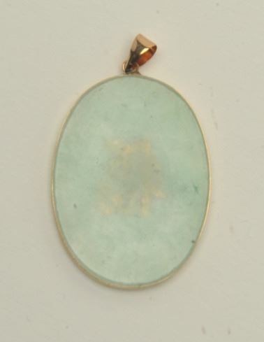 Lot 389 One oval jade piece framed in 14k gold