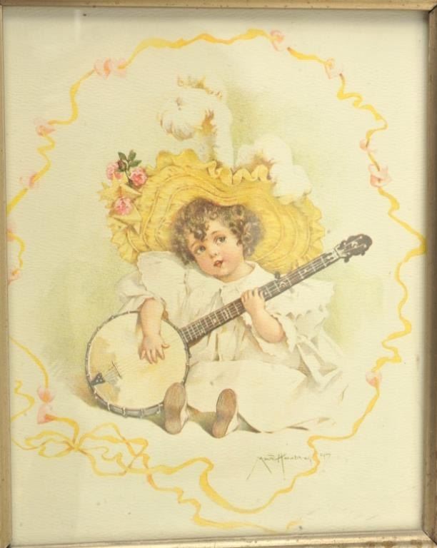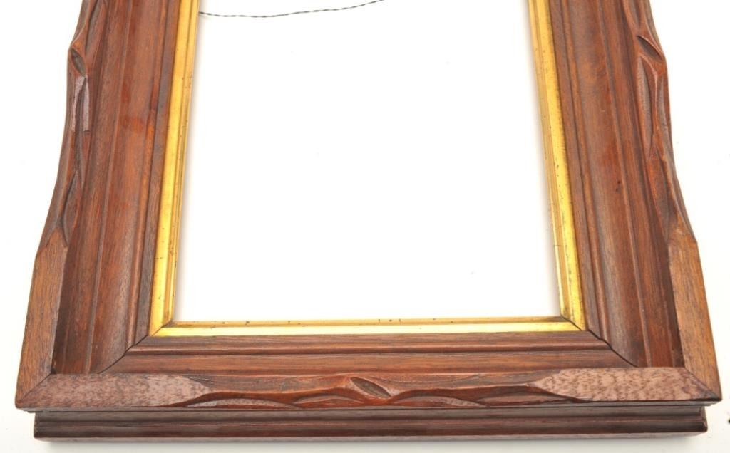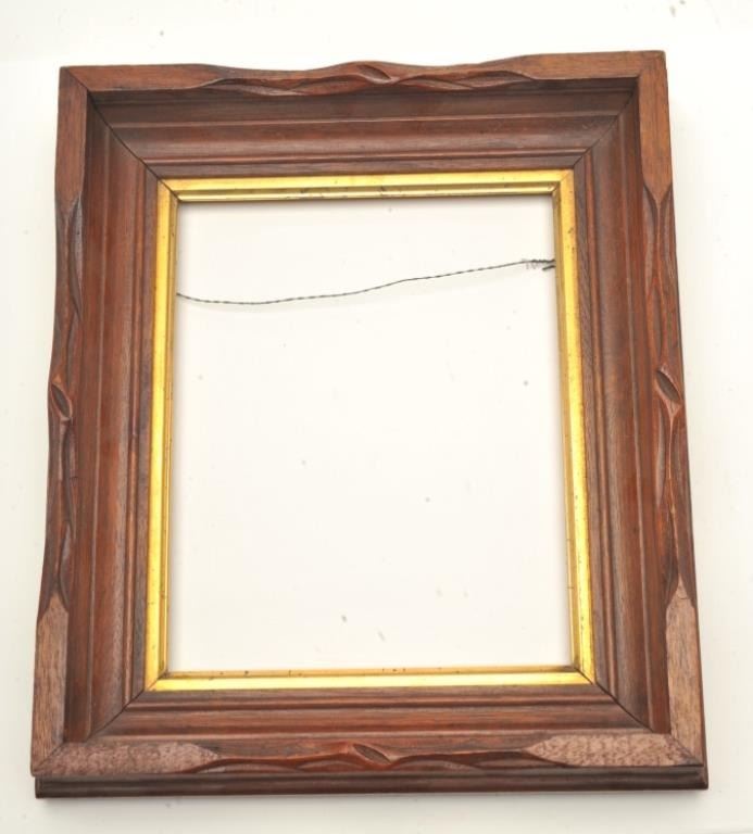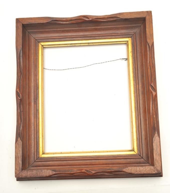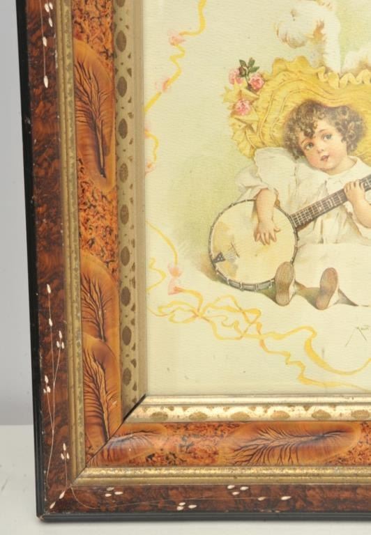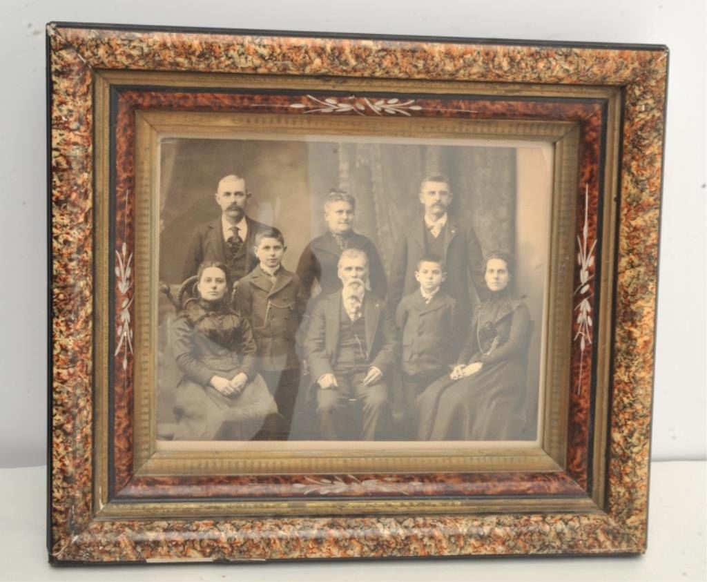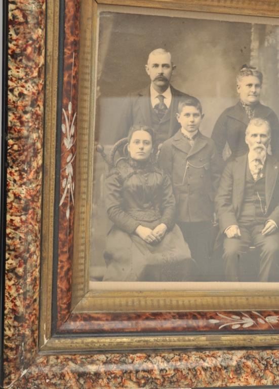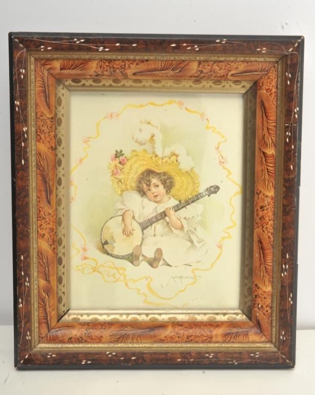 described: 1. Print of beautiful little girl with banjo in ornate Victorian frame. Signed but illegible and dated ’97. Measures 14” x 12 ¼” to the outside of the frame. 2. Family photo in vintage frame 1890s to turn of the century. Measures 12 ¼” x 14 ½” outside of frame. The frame shows minor damages. 3. Victorian frame of American origin showing 19th century and carved edges. Inside dimensions measure approximately 9 ½” x 7 ¾” and outside dimensions 12” x 14”. Lot of 3. Est.: $150-$300
