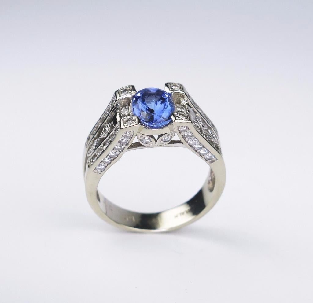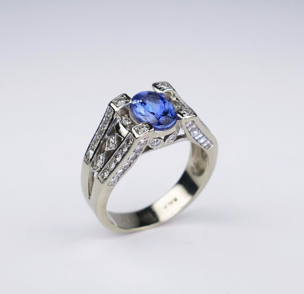 Lot 436 Gorgeous ladies ring set with an oval Tanzanite