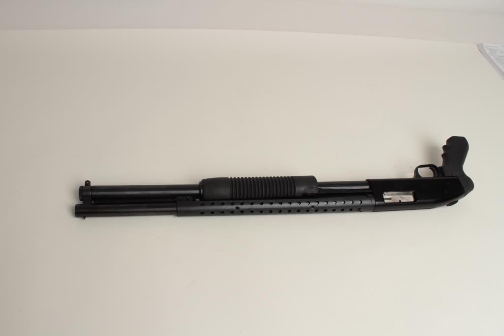 in 12GA, S/N L741126 with ventilated hand guard, strap swivels on barrel and rear grip. Slight surface rust on internal receiver. 90%-98% bluing with only major scratches on the receiver with minor surface rust on the end of the barrel. The gun is in 80%-90% condition with full length magazine tube with synthetic furniture. Very good bore. (Modern) Est.: $150-$300